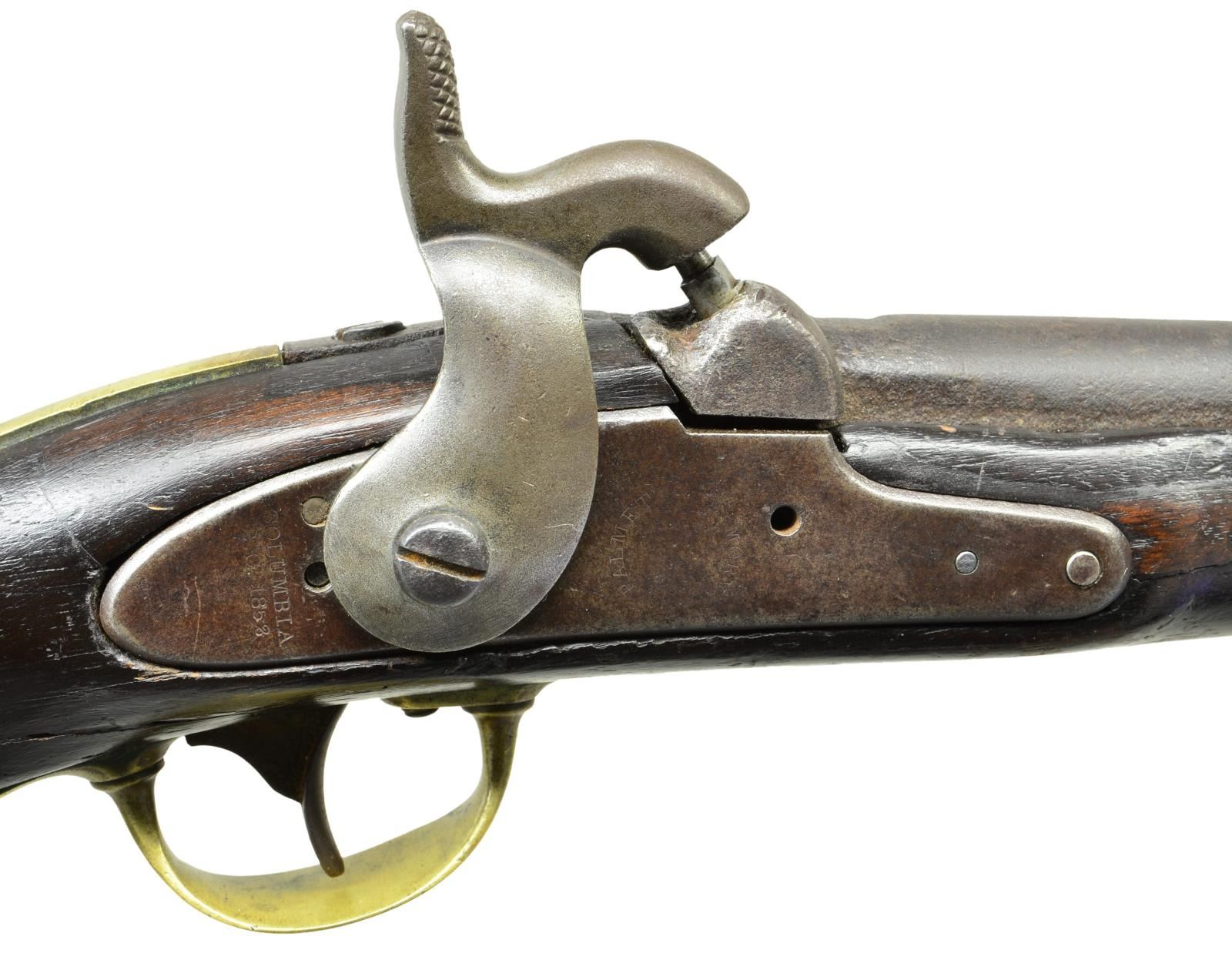 Cal. .54. NSN. Correct & authentic markings on lock “PALMETTO ARMORY” in circle around palmetto tree are weak, “COLUMBIA / SC 1852” at tail are good. No discernible markings on 8” barrel
