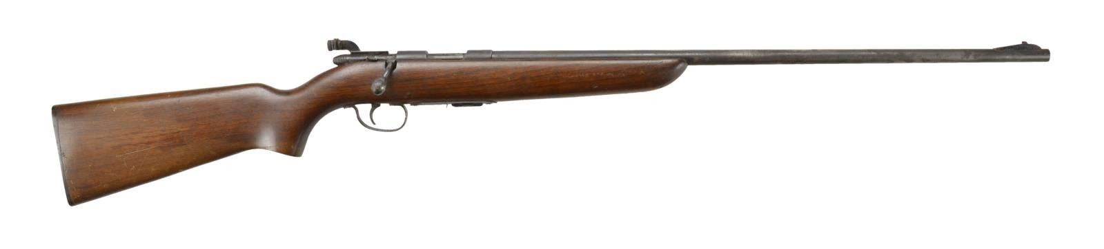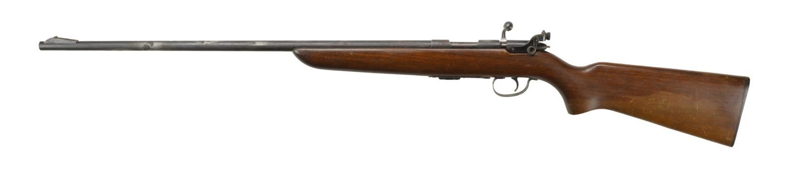 Cal. 22 S, L, LR. NSN. Bbl. 25" w/ ramp blade front & aperture receiver sight. Walnut pistol grip stock. MAGS: 1 - 5 rd. UNATTACHED ACCESSORIES: manual in poor torn condition. CONDITION: poor metal finish w/ deep pitting. Good stock finish. Very good bore. (22-2861/MD). CURIO. $100-150.