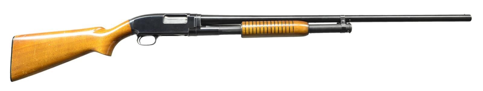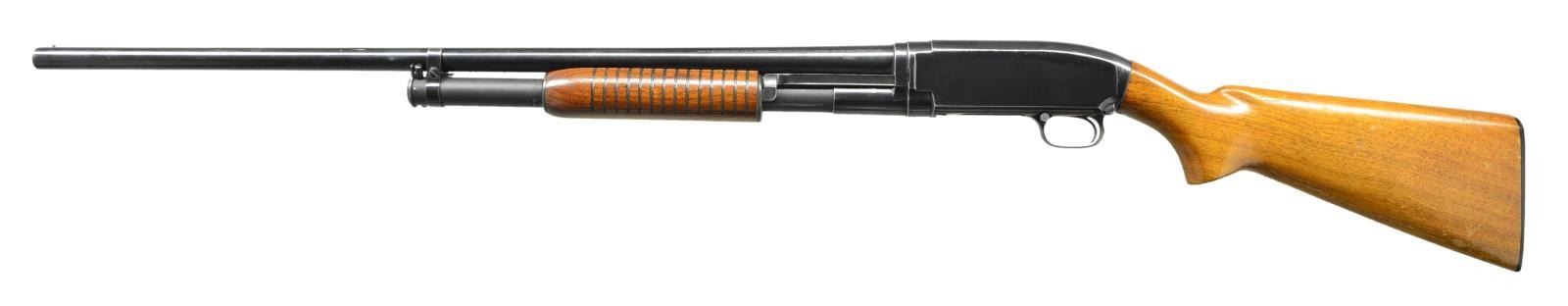 Cal. 12 Ga., 2 3/4". S# 1342938 (1953). Bbl. 30" w/ bead & full choke. Walnut grooved forearm & pistol grip stock w/ Win. buttplate. CONDITION: Good plus blue w/ peppery oxidation & edge wear. Sanded & refinished wood has good finish w/ moderate handling marks. Very good bore. (22-2742/MD). CURIO. $350-500.