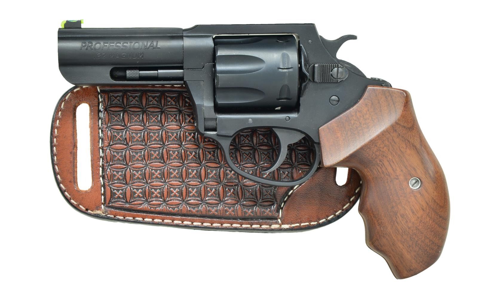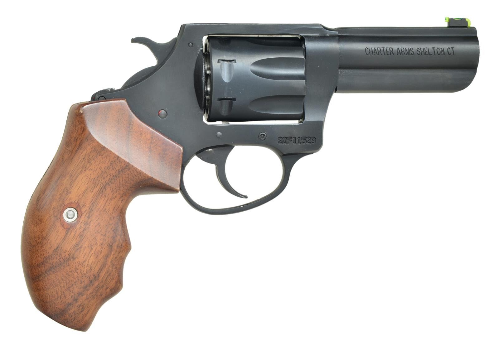 Cal 32 MAG. S# 20F11529. Bbl.3". 7-shot revolver. Hi-Vis fixed front blade sight w/ rear notch. 7 shot fluted cylinder. Matte black finish on all exposed metal surfaces. 2-pc wraparound hardwood grips. UNATTACHED ACCESSORIES: Black plastic factory case, brown leather holster & paperwork. CONDITION: All aspects indicate very little use. No noticable blemishing. Bright bore w/ sharp rifling. (22-3352/JZ). MODERN. $200-300