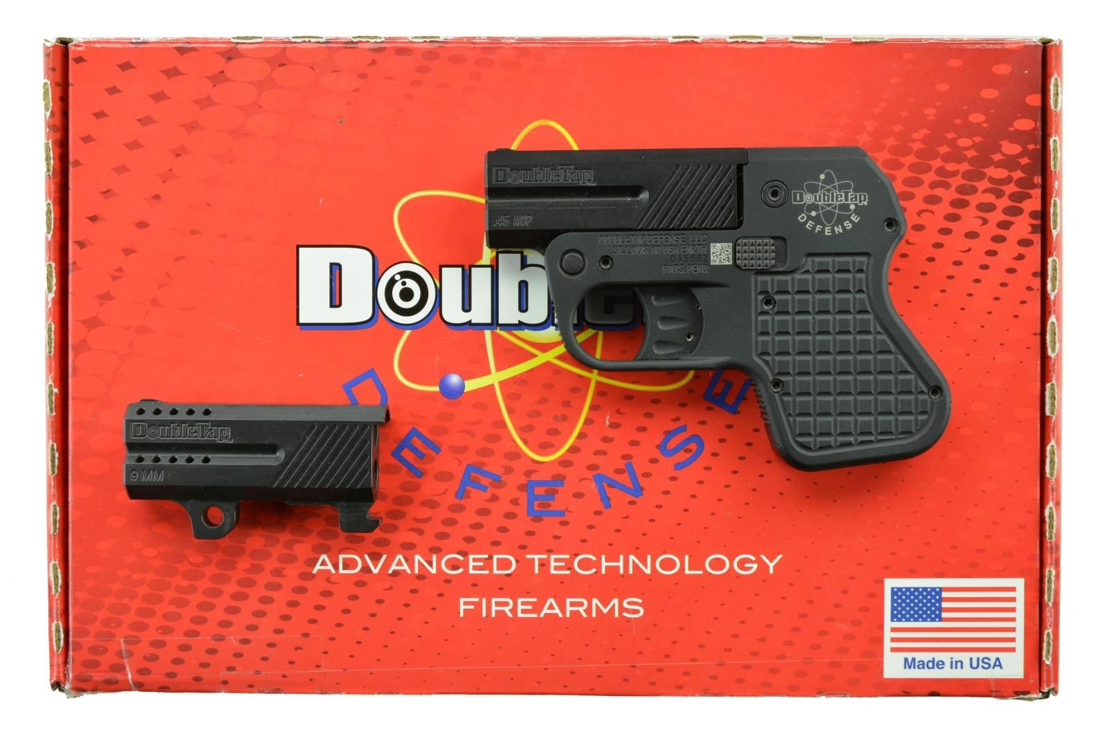 Cal. 45ACP S# DA5662 Bbl. 3" Marketed as "the World's Smallest & Lightest .45 ACP Concealed Carry Pistol", the DoubleTap boasts stainless steel barrels w/ an aluminum frame, finished in a matching corrosion resistant MIL-STD matte black finish. It is an over/under barrel derringer design capable of firing 2 rounds before reloading w/ the onboard speed loader stored in the pistol grip. Fixed sights consisting of a small blade w/ rear notch. Lanyard loop at backstrap. Convertible from 45 ACP to 9mm Parabellum. UNATTACHED ACCESSORIES: 3" ported 9mm barrel assembly, speed loaders, factory box & paperwork. CONDITION: All outward aspects indicate very little use, if any. Bright bores w/ sharp rifling. No obvious finish degradation. (22-2446/JZ). MODERN. $200-300
