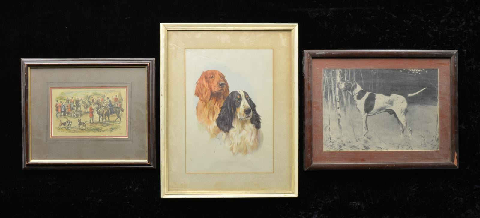 A large variety of prints primarily of hunting scenes w/ dogs as the main focus. Some are framed. CONDITION: primarily good to very good w/ wear & sm. stains. PROVENANCE: From the Collection of Thomas B. & Freeda Harper Jr. (02-16563/MD). $250-500.