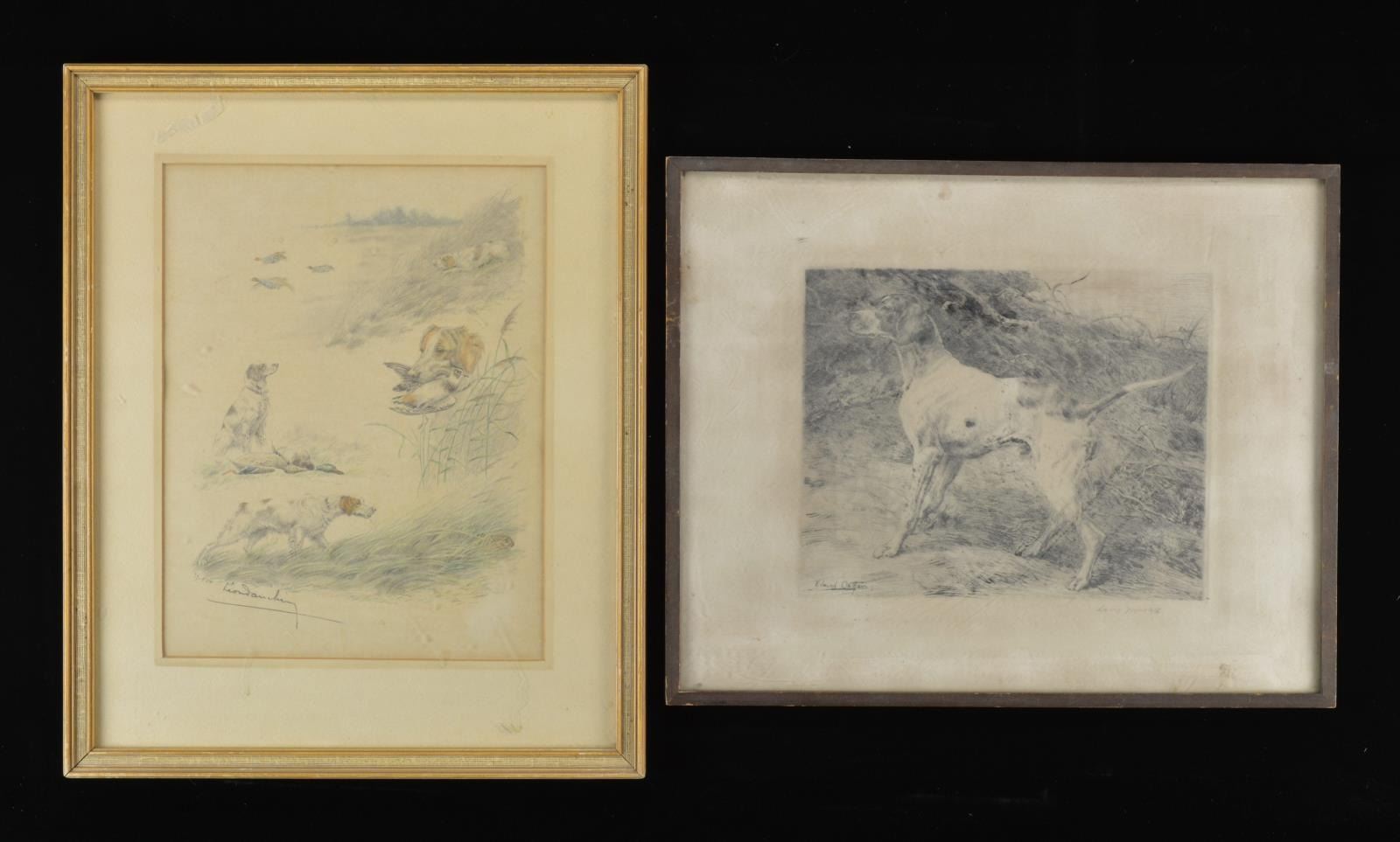 2) Cecil Aldin circa 1920 "The Old Hounds have their hackles up as they dash through the cover". 13.5" x 10.5" framed print showing several racing cocker spaniels. CONDITION: very good overall.