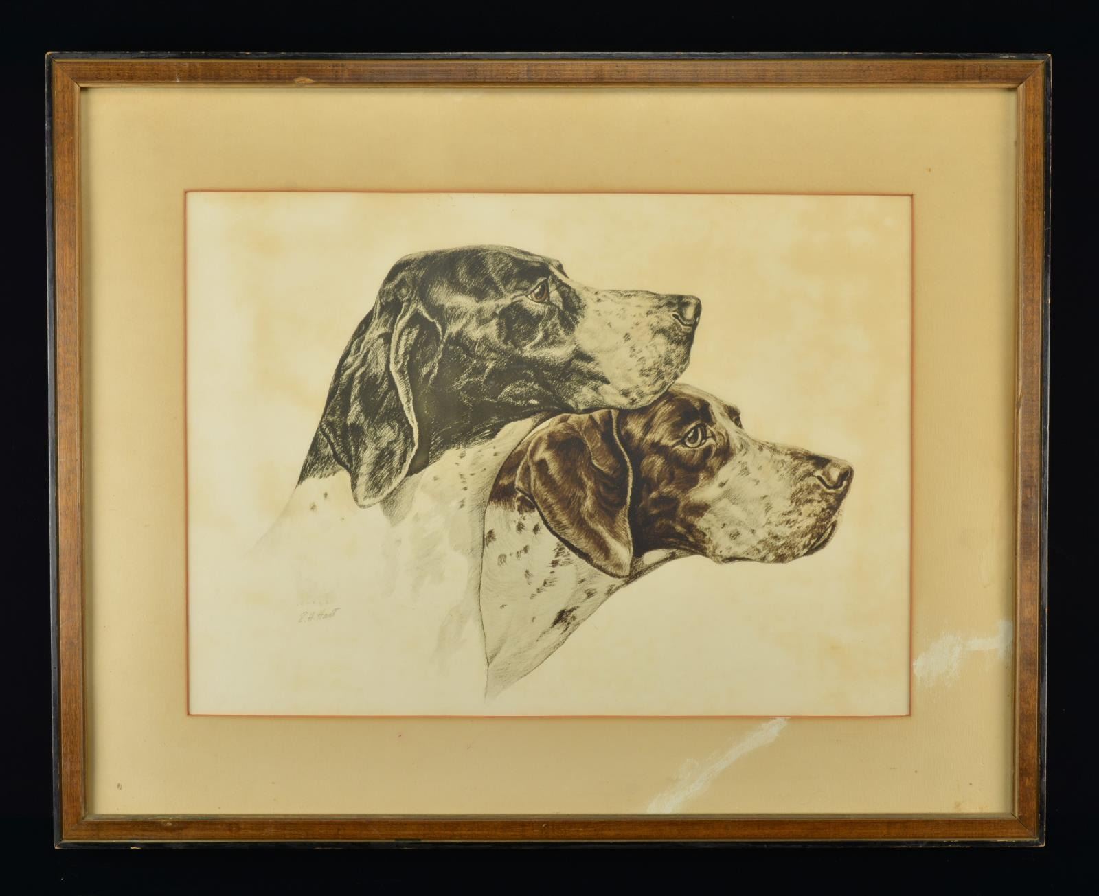 1) "POINTERS" BY ERNEST HUNTLEY HART. Print: 21 1/2" x 15 1/2". Frame: 29 1/2" x 23 3/4".
