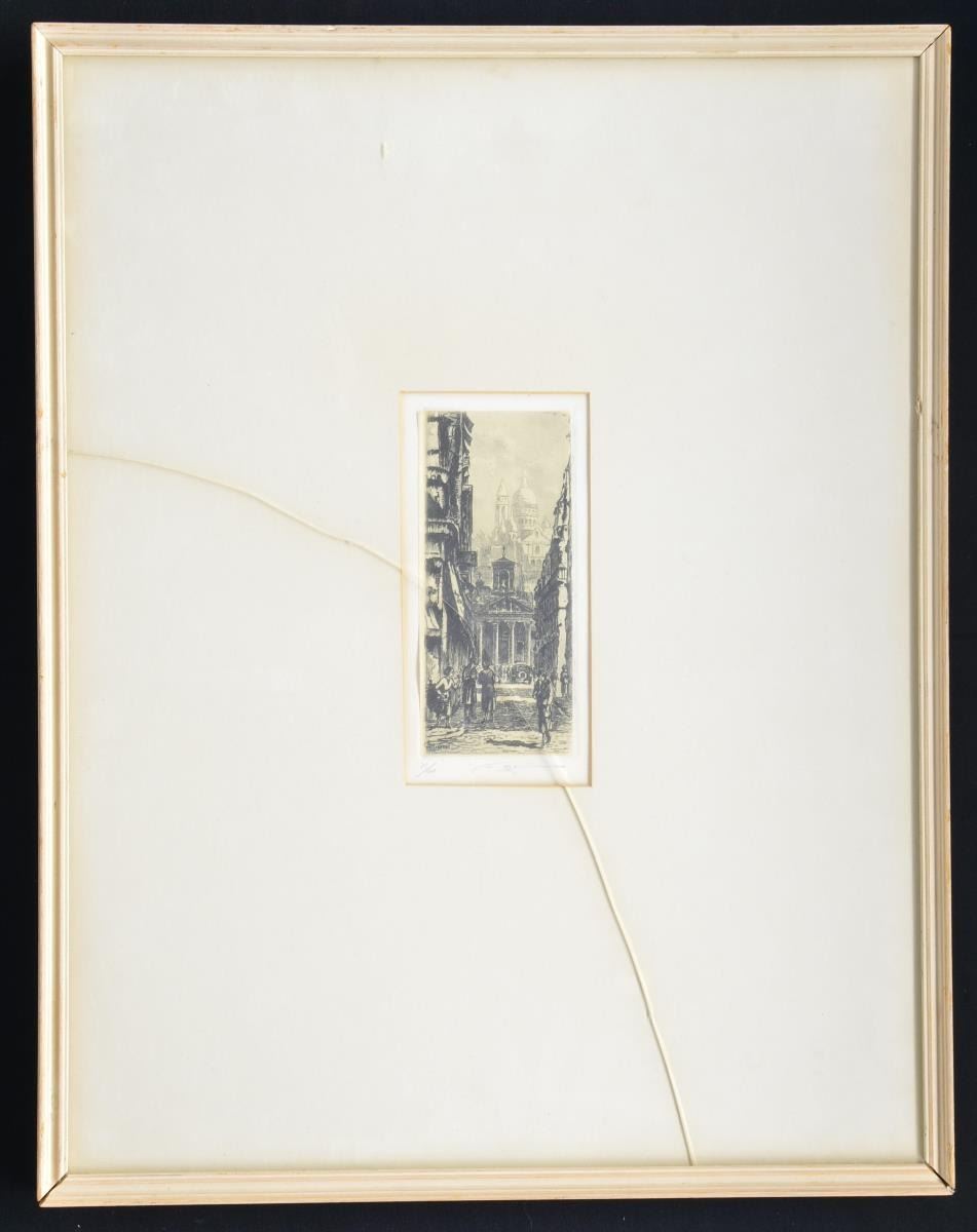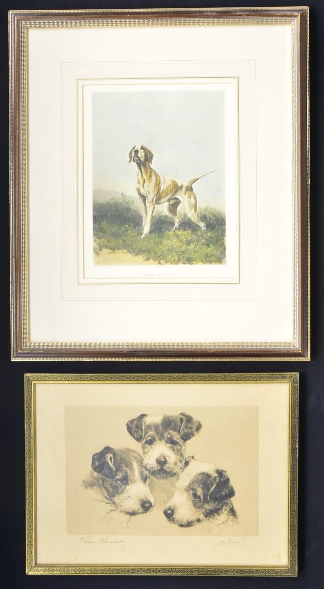 Framed engraving feature European style city scenes. Framed prints are of dogs. CONDITION: prints have not been removed to examine them. Good overall appearance w/ wear & tears to paper backs. PROVENANCE: From the Collection of Thomas B. & Freeda Harper Jr. (02-16561/MD). $250-500.