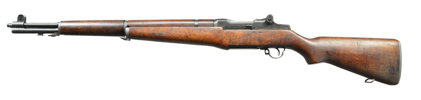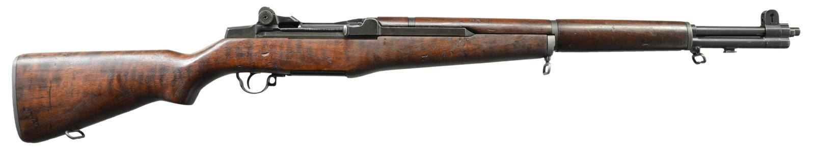 Cal. 30-06. S #6093445. Bbl. 24" marked w/ Springfield markings & dated 5-56. Muzzle erosion gauges at 1.0. Unable to get a proper throat erosion measurement. The 6 million serial number range Garands were the last produced by Springfield Armory for the US government. Bolt, trigger housing and operating rod have correct "-65 SA" drawing number. Safety has correct "-11 SA" drawing number. Hammer has earlier "-5 SA" drawing number. Elevation adjustment marked "WCE". Gas plug marked "BS". Stamped triggerguard. Walnut stock. 1/2" "DOD Eagle" cartouche on left side and circled "P" firing proof on bottom of wrist. CONDITION: walnut stock has armory oil finish w/scattered dings, light scratches & handling marks. Buttplate and rear sling swivel assembly have a light gray parkerized finish w/ light oxidation staining. Balance of metal retains 80% of a brown parkerized finish w/ some light silvering on gas cylinder & scattered fading. Very good bore. (22-2553/MJC). CURIO. $600-900.