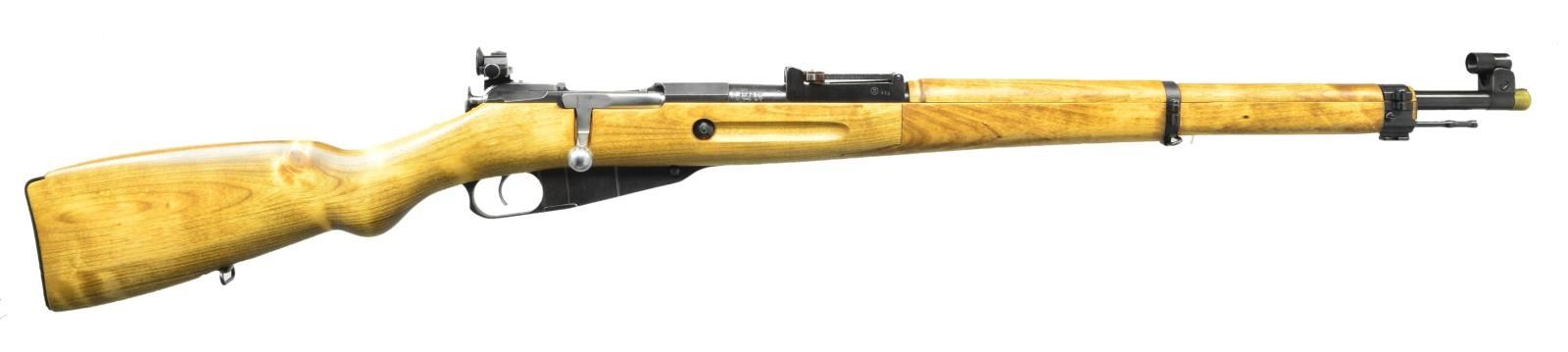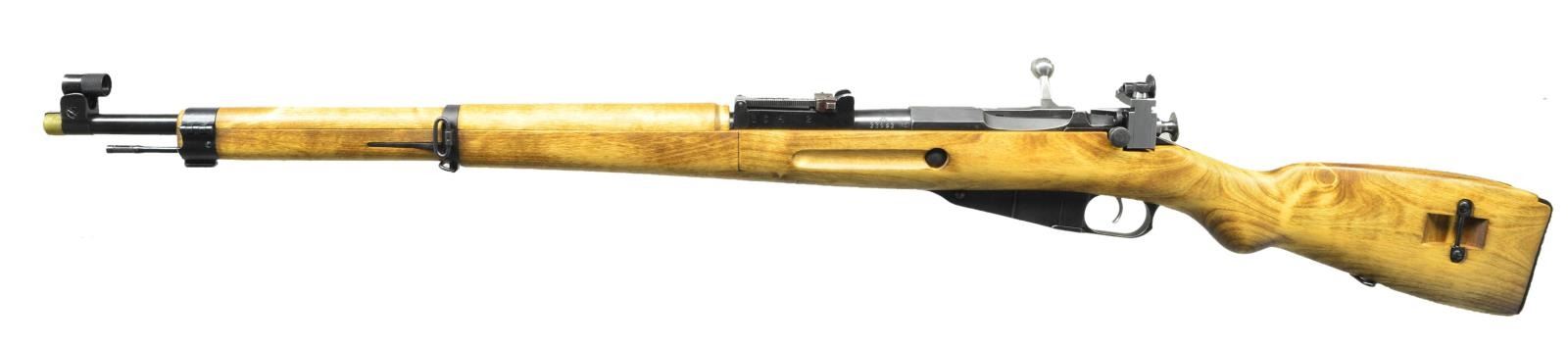 Cal. 7.62x54R. S #M33993 (Original Finn S # 33993). 27" Bbl. w/import marking. Bolt knob S # matches Bbl, other parts do not. Bbl. top marked "S.K.Y." and w/ Sako gear logo, denoting this was originally an early undated Civil Guard M28/30 rifle. A small number of M28/30s were reworked into target rifles like this by the Finns. Left side of Bbl. marked with S #, boxed "SA" army marking and "KF" proof. Right side of Bbl. marked with Sako proofs and two Civil Guard District #s "S.151349" and a canceled "S69917". Factory turned down bolt. M28/30 style rear sight graduated to 2000 meters. Receiver mounted diopter rear sight. Diopter front sight. M39 hardwood stock with square finger joints. Cleaning rod present. UNATTACHED ACCESSORIES: brass knurled muzzle cover. CONDITION: Hardwood stock rates near excellent with some minor handling marks. Metal retains 95% arsenal rework blue with some light silvering on the exposed edges. Very good shiny bore. (22-2343/MJC). CURIO. $250-400.