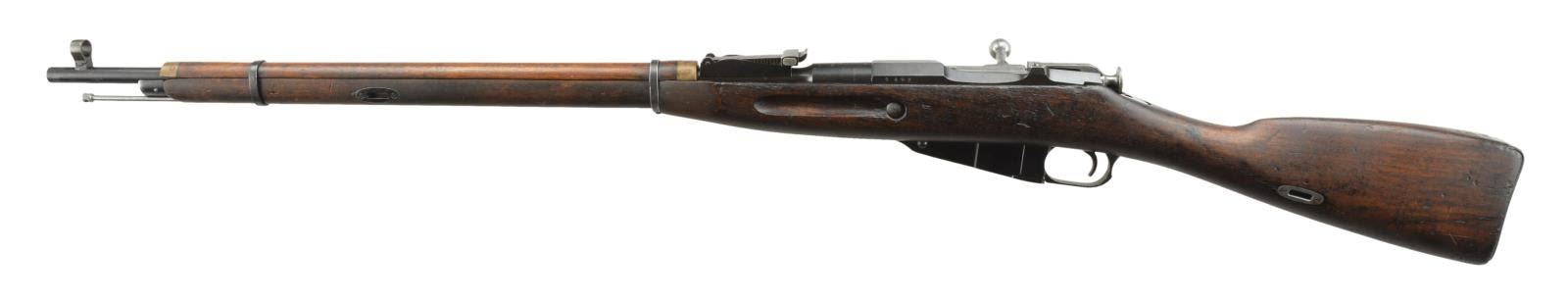 RIFLE. Cal. 7.62x54R. S# 8492. CAI import marked 28 3/4" bbl. w/ "SA" proof. Hooded post front sight & 2,000m tangent rear sight. Matching numbered bbl. & bolt. 2 Piece hardwood stock w/ finger joint construction having cleaning rod. CONDITION: good overall as arsenal refinished w/ wear, marks, & gouges commensurate w/ use & age. Refinished metal has oxidation & prior pitting. Stock appears to have grain checks along left side buttstock & hairline cracks behind receiver. Good bore. (22-639/MD). CURIO. $200-300