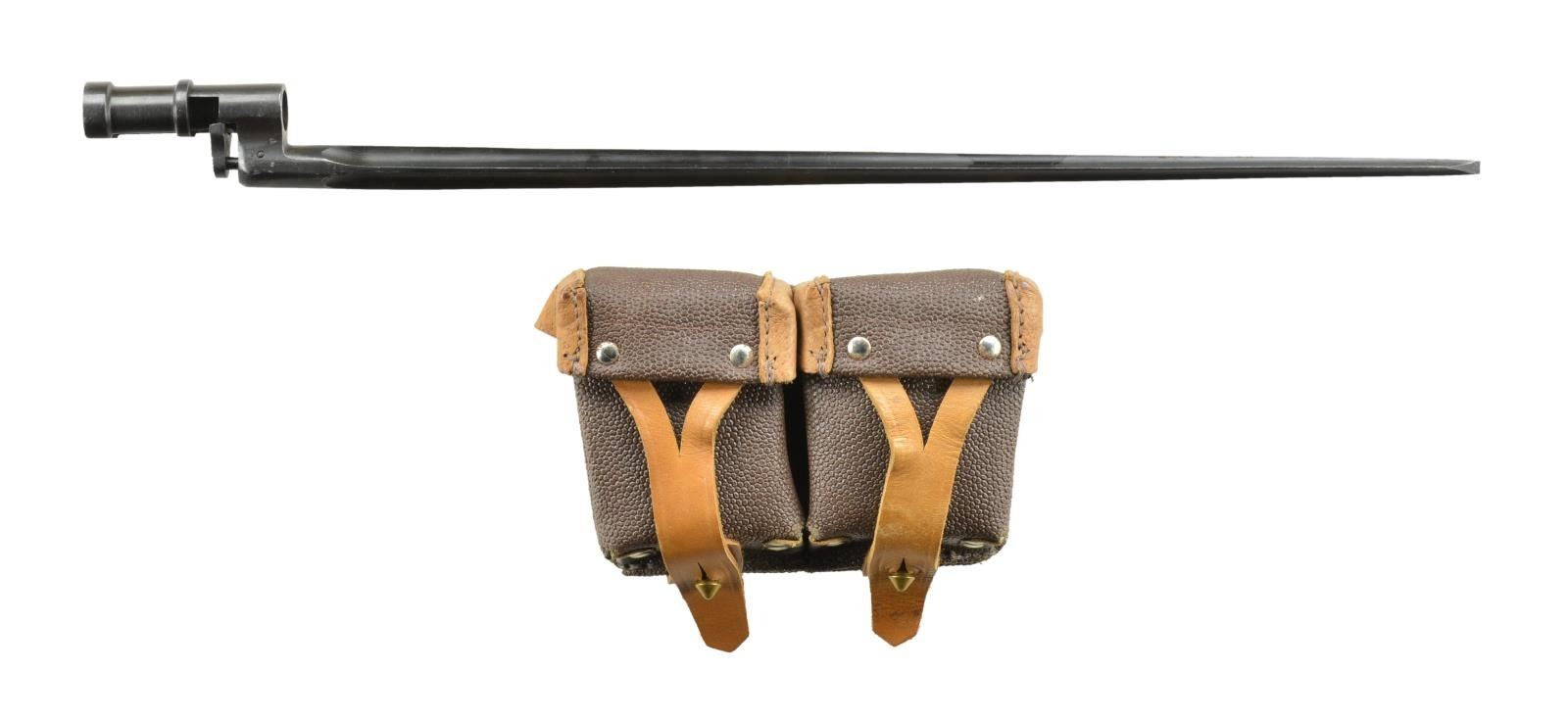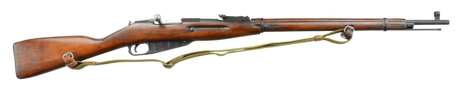 REBUILT TO MODEL 91/30 CONFIGURATION. Cal. 7.62x54R. Importer S# 033413. Bbl. 28.7" w/ Premier Tula Arsenal bbl. marking & S# "56684". PW Arms import mark on hex receiver. Matching numbered bolt, mag. floorplate, & buttplate. Hardwood stock set w/ green web sling on leather "dog collars". UNATTACHED ACCESSORIES: dbl. ammo pouch w/ oil bottle & tool. matching numbered socket bayonet in good condition. CONDITION: very good overall as arsenal refinished w/ wear & moderate handling marks. Stock has chips near top tang. Fair worn bore. (22-725/MD). CURIO. $300-500.