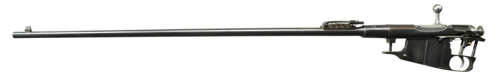 Cal. 7.62x54R. S# 39281. Bbl. 31". Matching bolt, mismatched floorplate. Bbl. top is marked w/ Sestroyetsk arsenal marking, boxed Finnish "SA" marking & 1898 date. Receiver tang is dated 1898. Includes trigger assembly, bolt, magazine assembly, action screws, rear sight & front sight. Rear sight graduated to 2600 Arshins. Inverted V front sight. One rear sight screw missing. CONDITION: bolt was cleaned & shows remnants of light oxidation. Metal retains 95% reblued finish. Bore is counterbored for 3" near muzzle. Worn bore w/ overall frost & some scattered pitting. (01-21522/MJC). ANTIQUE. $75-125.