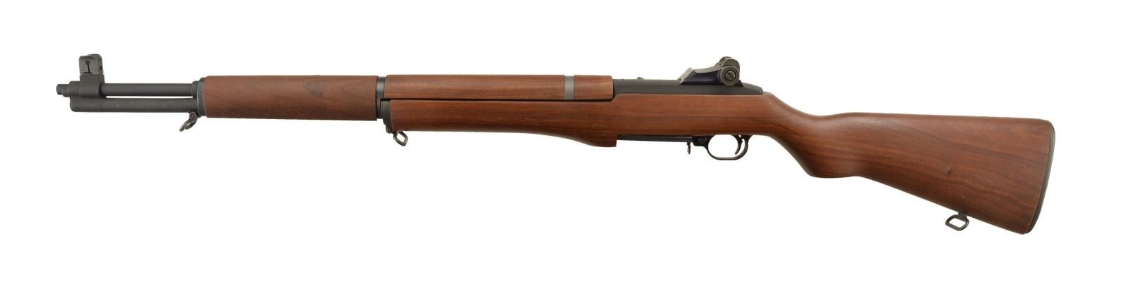 Cal. 22 LR. S# 1035. This rifle has a Ruger 10/22 base action w/ features that make the rifle impersonate a US M1 Garand rifle. Bbl. 24" w/ National Match style sights. Receiver drilled & tapped. American walnut stock set w/ trapdoor buttplate. MAGS: 1 - 10 similar to 10/22 rotary mag. w/ base plate resembling M1 Garand trigger housing plate. CONDITION: near excellent overall including bore. (22-2448/MD). MODERN. $300-500.