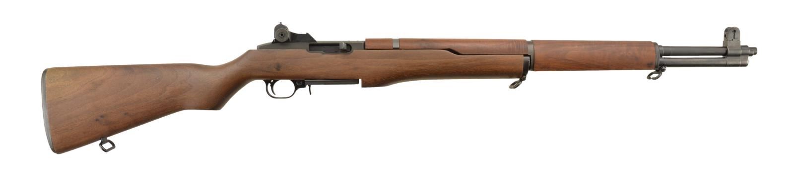 Cal. 22 LR. S# 1083. This rifle has a Ruger 10/22 base action w/ features that make the rifle impersonate a US M1 Garand rifle. Bbl. 24" w/ National Match style sights. Receiver drilled & tapped. American walnut stock set w/ trapdoor buttplate. MAGS: 1 - 10 similar to 10/22 rotary mag. w/ base plate resembling M1 Garand trigger housing plate. CONDITION: near excellent overall including bore. (22-2453/MD). MODERN. $300-500.