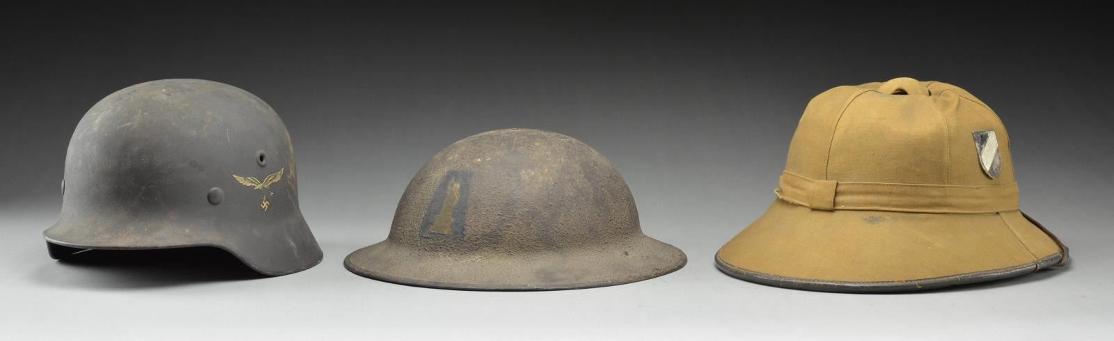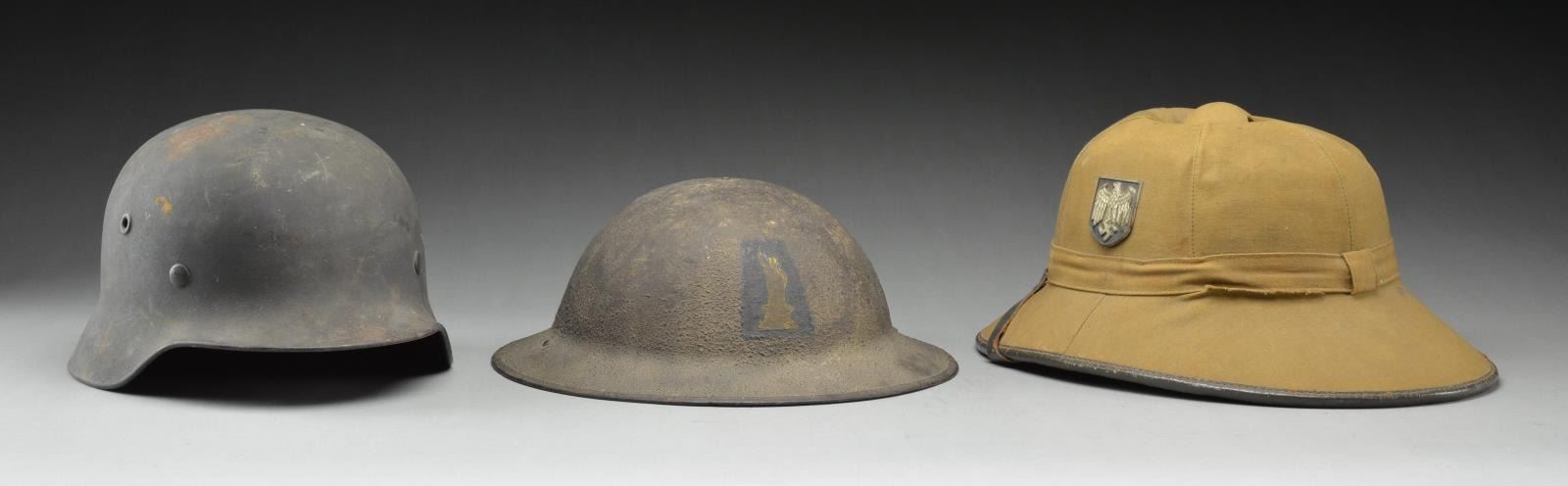 Lot 2391 1 US & 2 GERMAN HELMETS.