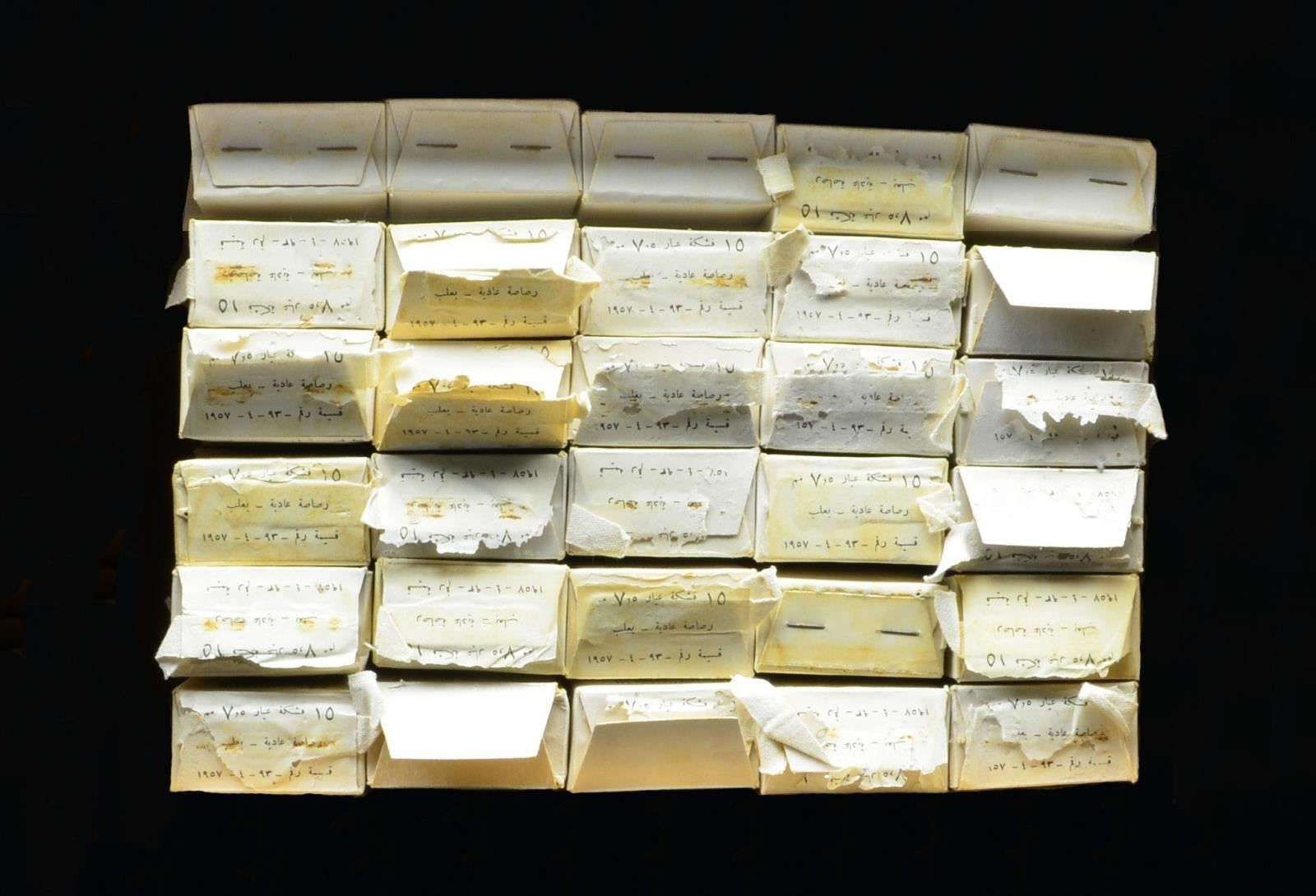 Ammo appears Syrian w/ Farsi markings on boxes. CONDITION: most are sealed w/ good to very good overall condition. Ammo appears serviceable. (02-17003/MD). $300-600.