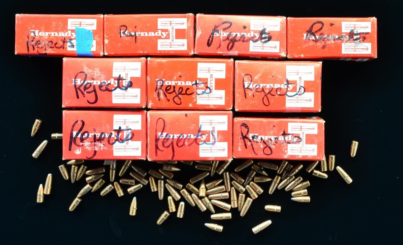 ALL boxes are reused Hornady boxes w/ user written "REJECTS".