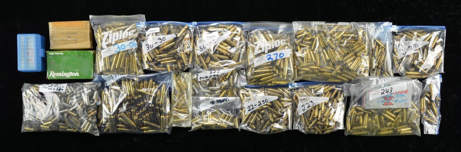 PRIMED BRASS: 90 cal. 223 Rem. / 400 Mixture of fired & primed 38 Spl. / 50+ cal. 243 Win. CONDITION: appears in good serviceable condition. (02-16883/MD). $200-400.