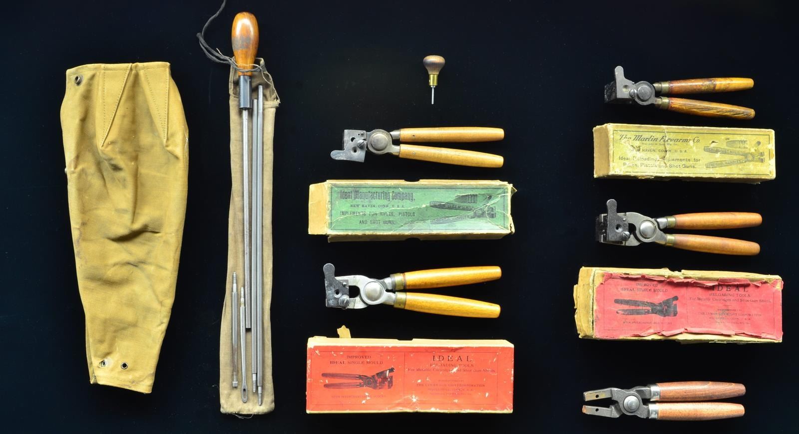 Notable items include: Ideal No. 454424 bullet mold w/ handles & box. / 1 Idea No. 360271 bullet mold w/ handles & box for Marlin Firearms Co. / 1 Ideal No. 25727 25 cal. Express bullet mold w/ handles & box. / 1 Ideal No. 457127 bullet mold w/ handles & box.