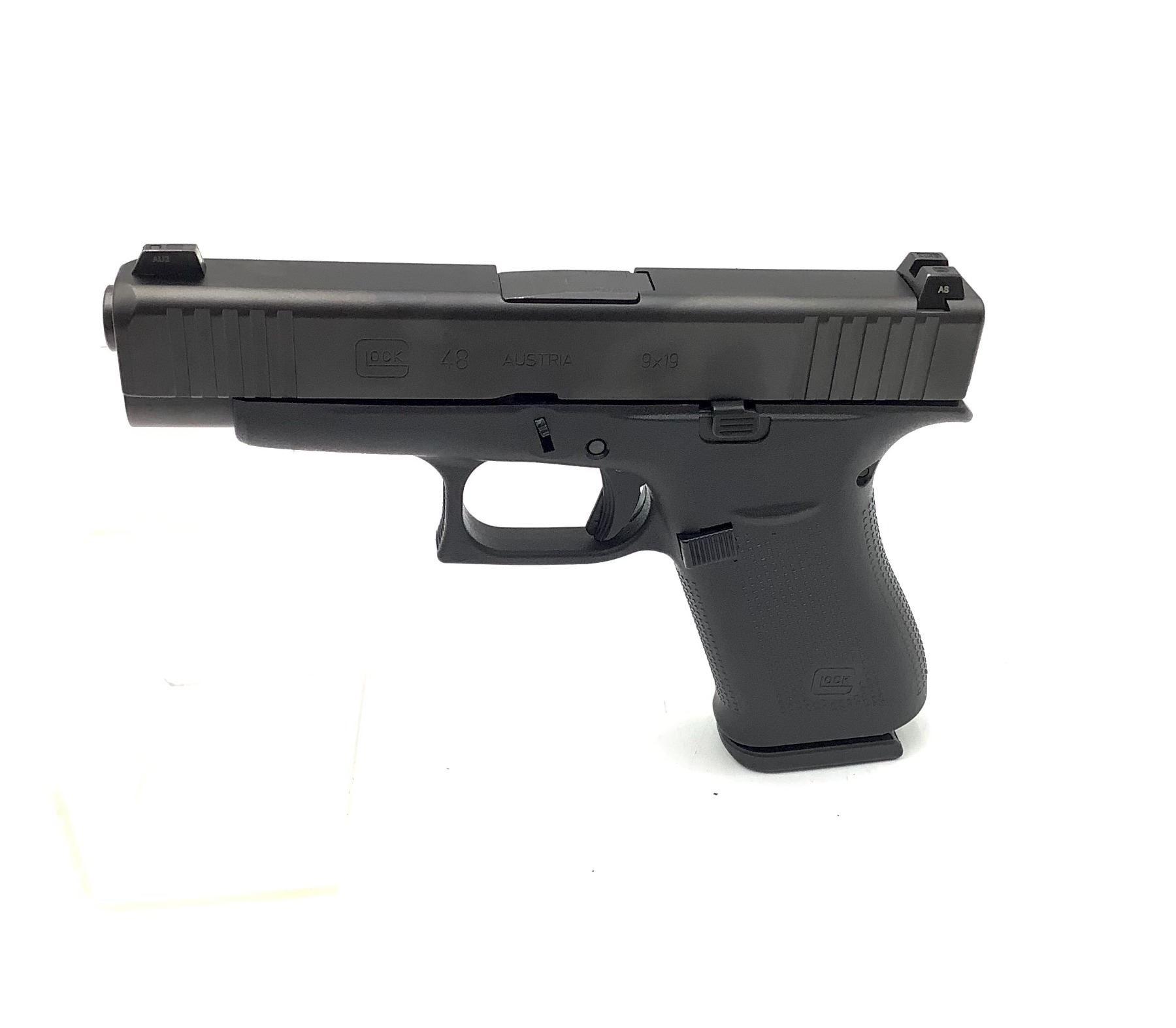 Glock G48 9mm Semi Auto Pistol Glock Night Sights Black 4.2" Barrel, New, Restricted. Includes two magazines and plastic case. This is a restricted firearm.
