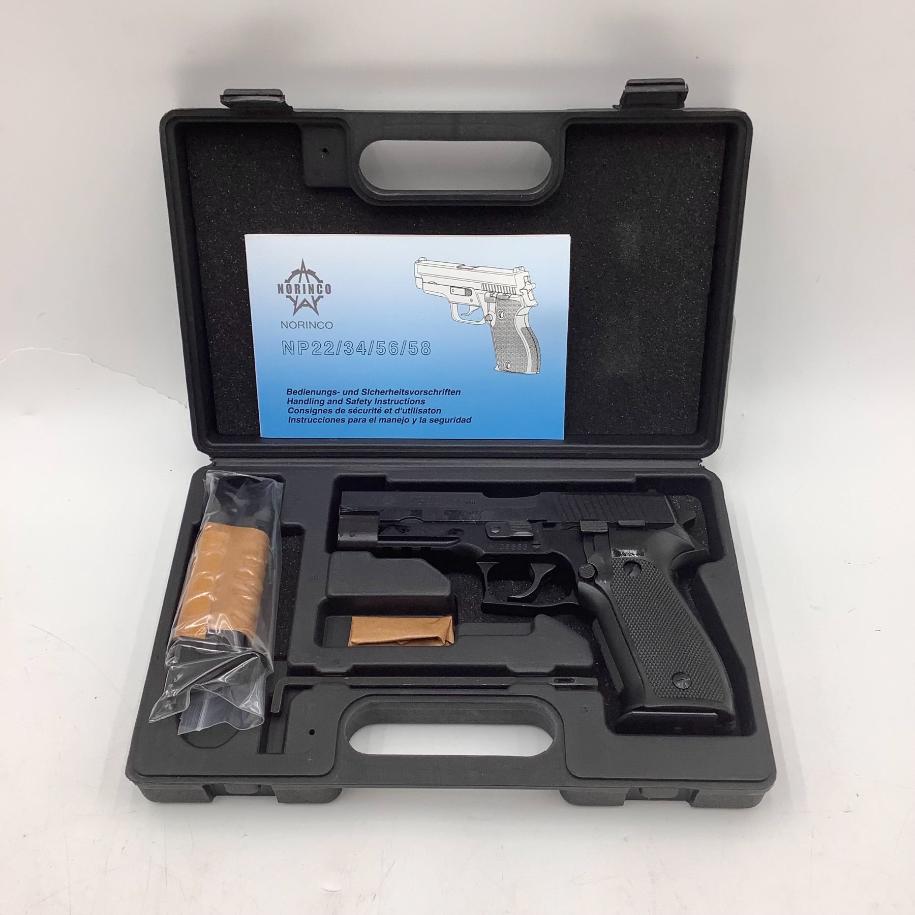 Norinco NP22 Semi Auto Pistol 9mm Sig 226 Clone 4.4" Barrel, New, Restricted. Includes two magazines and plastic case. This is a restricted firearm.