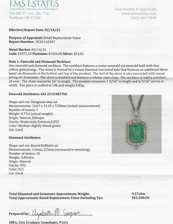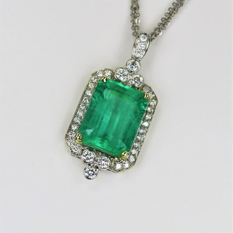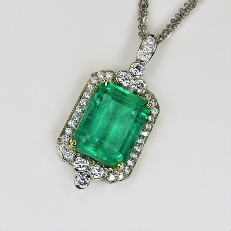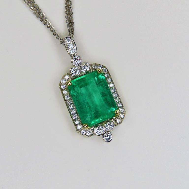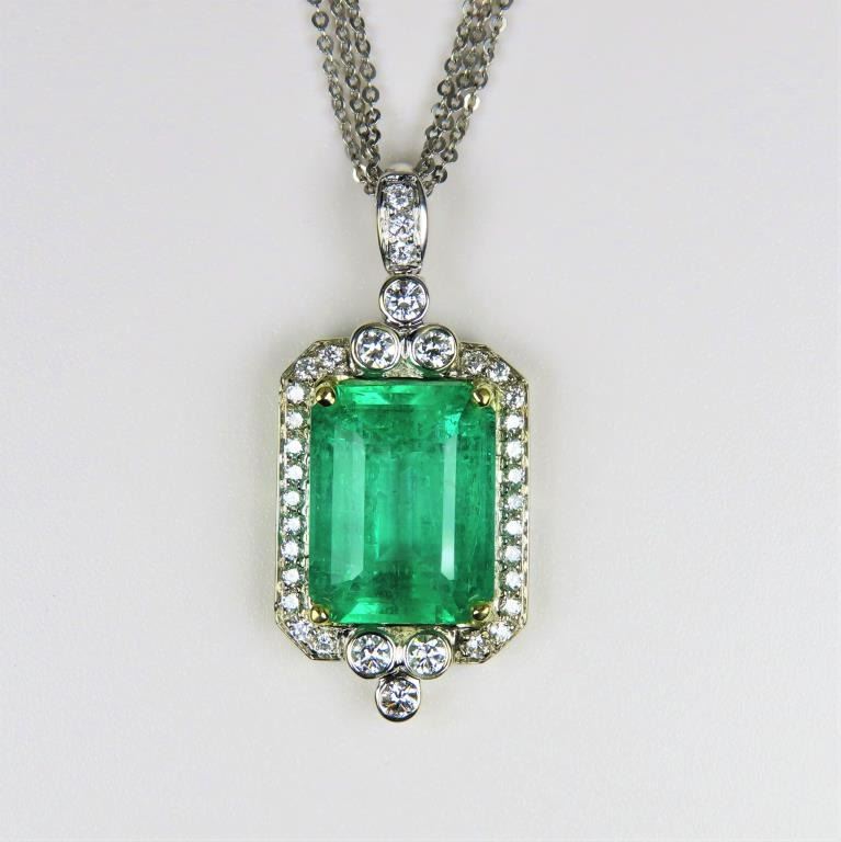 Lot 65a Spectacular 8.77 Emerald and Diamond Pendant