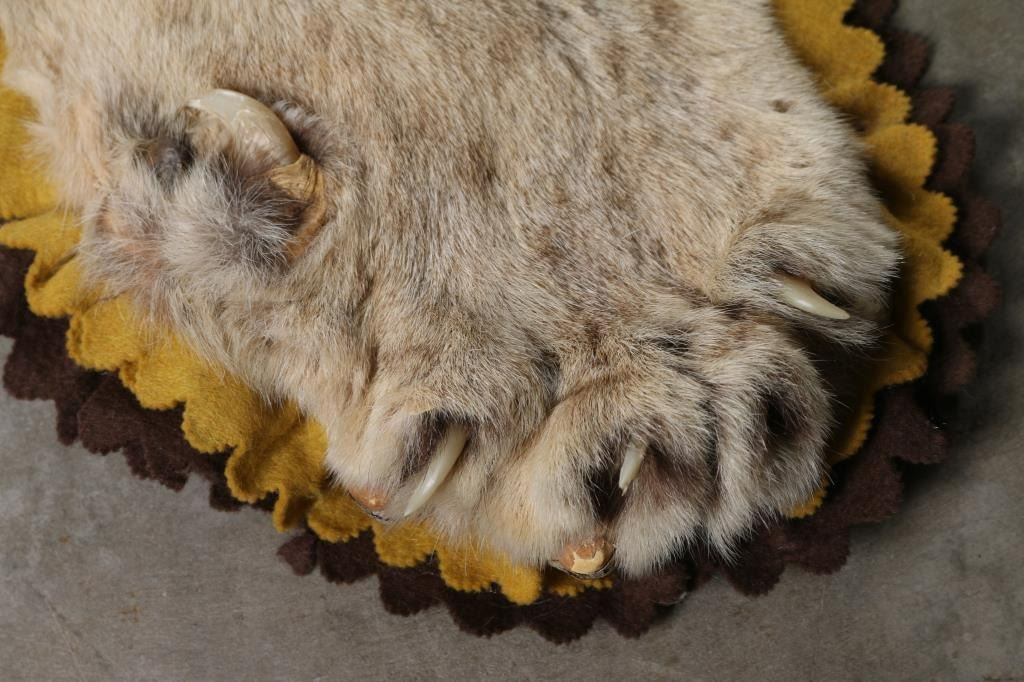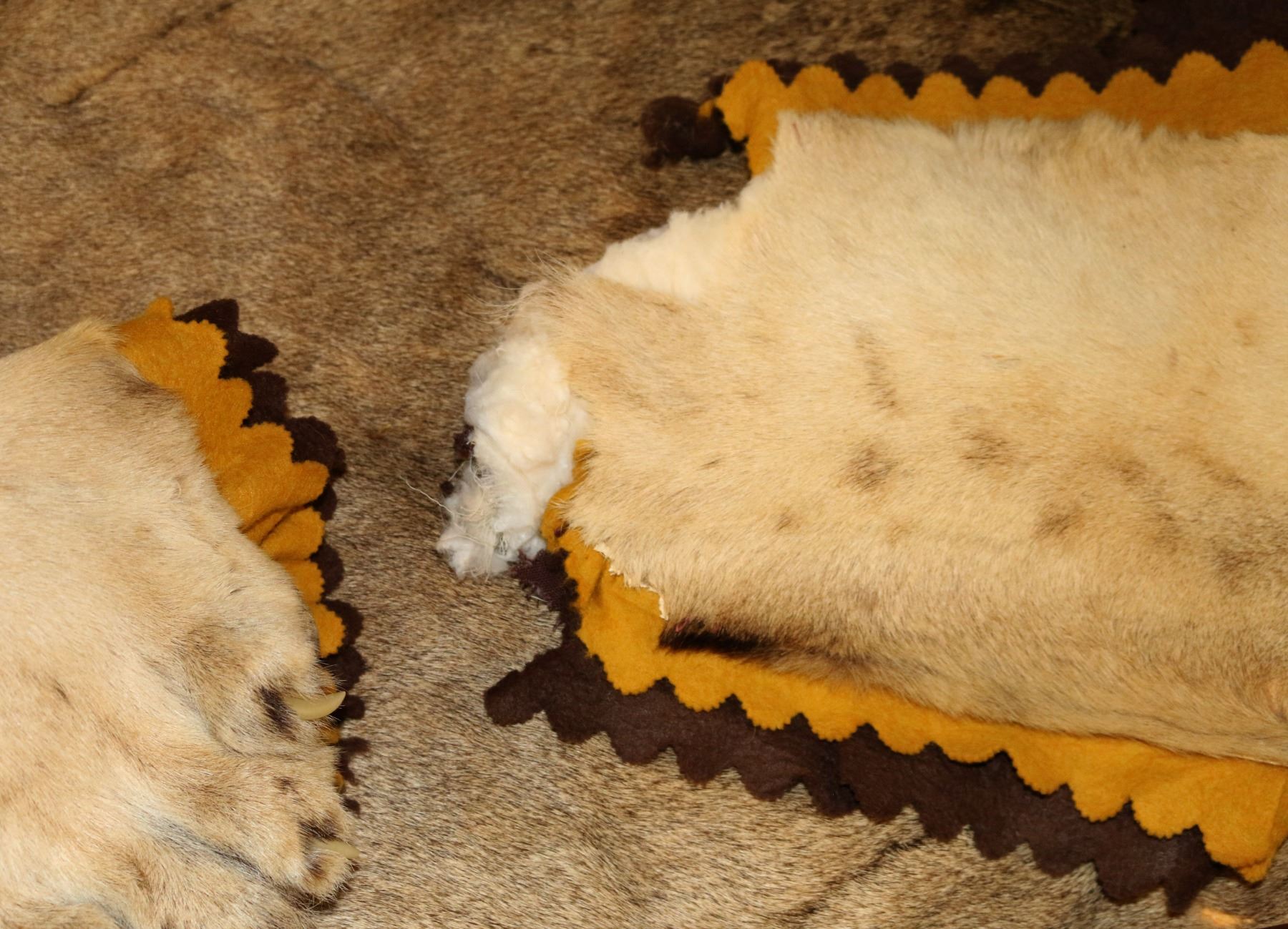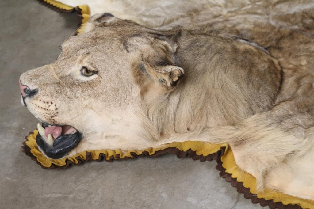 Mounted on felt. measures 8' long 7' wide. Left rear paw is missing.