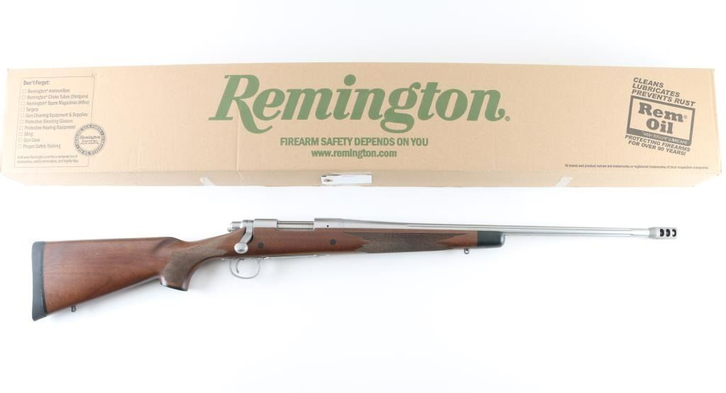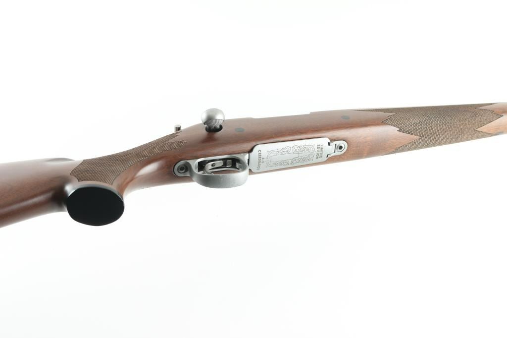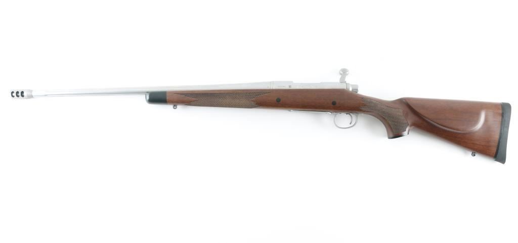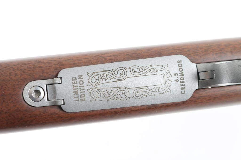 'Limited Edition' stainless steel bolt action rifle chambered for 6.5mm Creedmoor. Features 22" fluted barrel, muzzle brake, no sights, receiver drilled & tapped with no mounts installed, hinged floorplate (engraved on bottom "LIMITED EDITION /image of a cartridge surrounded by floral scrolls/ 6.5 CREEDMOOR"), manual safety, checkered walnut stock with contrasting black forend tip & grip cap, right handed cheekpiece, sling studs, solid rubber recoil pad. Rifle is like new with few blemishes. Includes factory box with manual. Condition is NRA Excellent - like new *** Modern Firearm ***