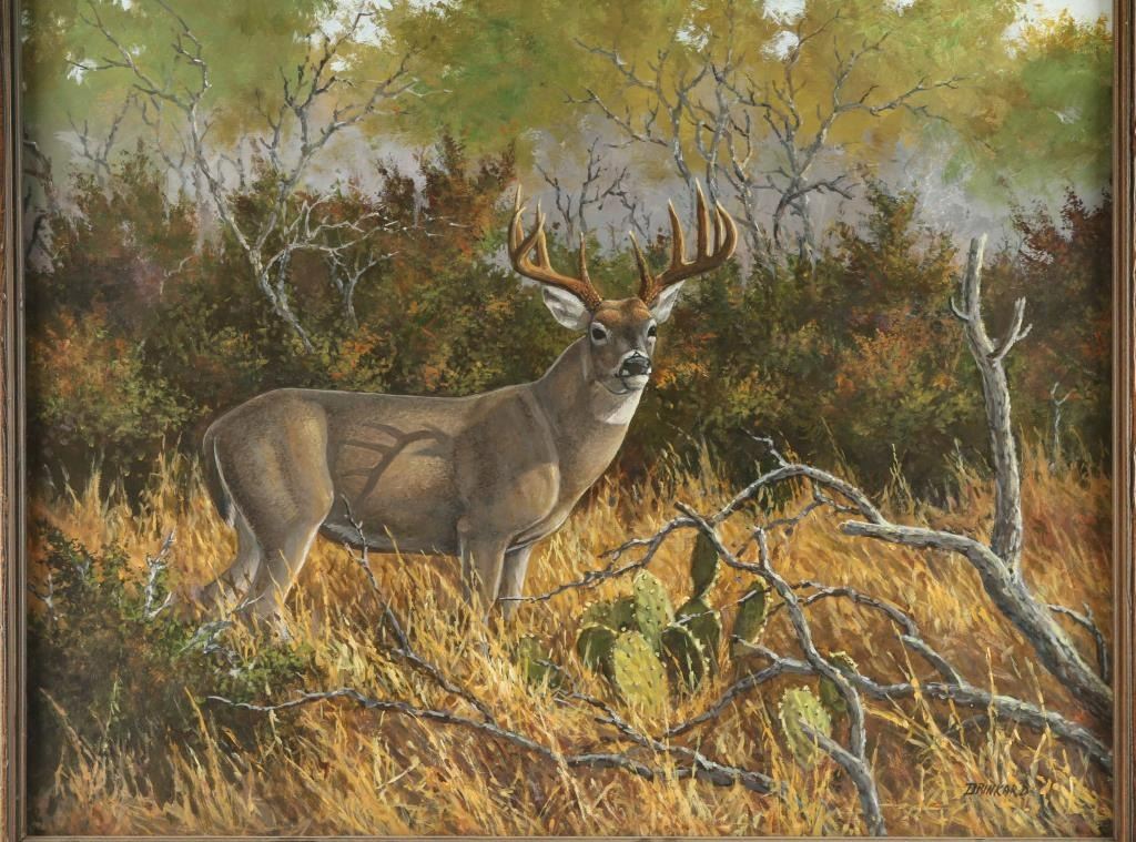 By noted wildlife artist David Drinkard, entitled "Wildlife", Image size is 27.5 x 21.5, signed lower right hand corner, with original tag from Altermann & Morris Galleries on back. Bio: Known wildlife and sportsman artist. A supporter of conservation groups such as Ducks Unlimited, the Gulf Coast Conservation Association and Quail Unlimited. Sales of his sporting images have generated more than one million dollars for these groups dedicated to the preservation of the sportsman's way of life.
