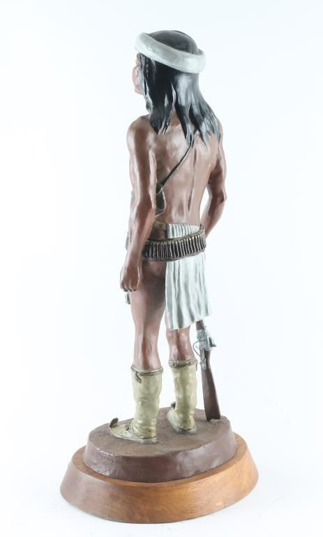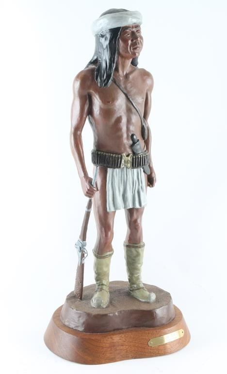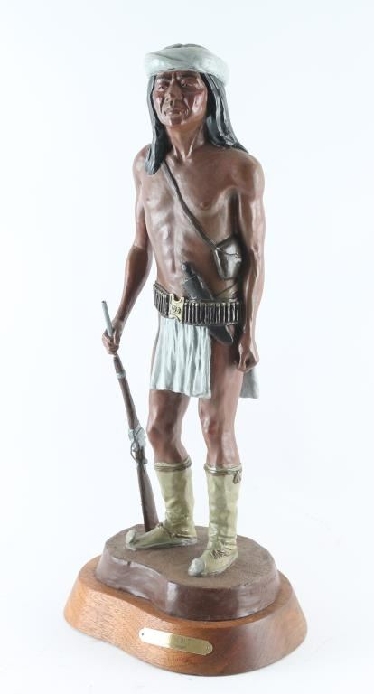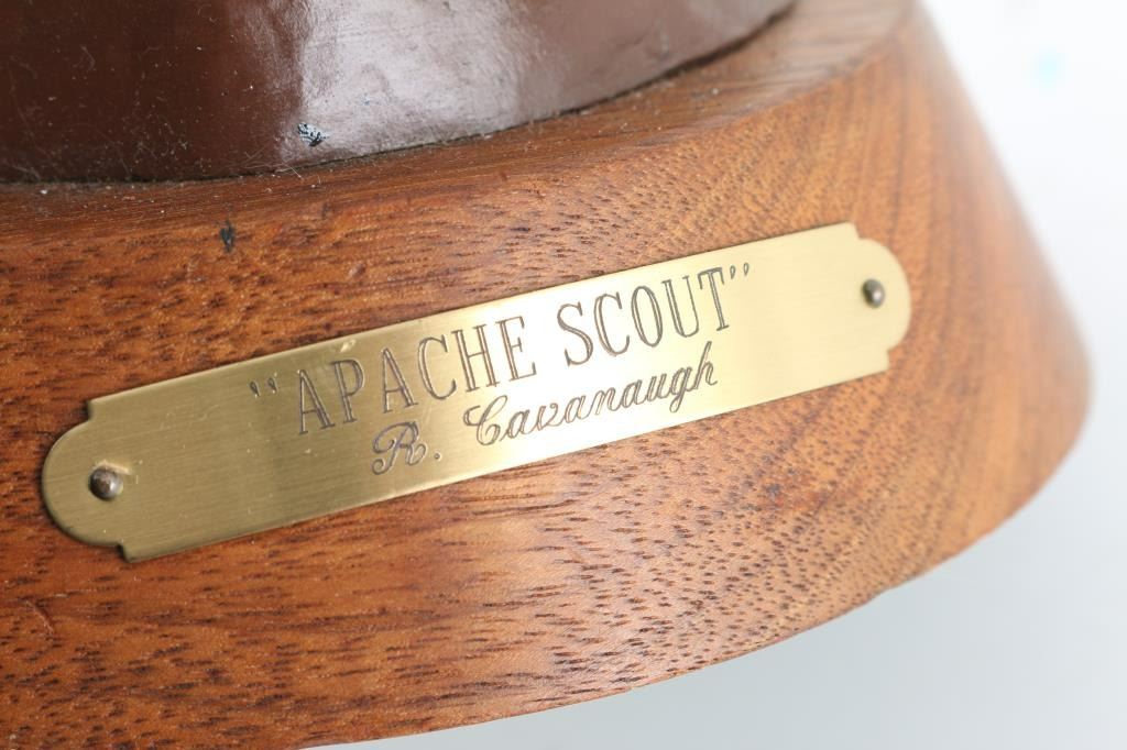 By A Cavanaugh, entitled "Apache Scout" depicting indian with rifle. Measuring 21x8" signed and numbered 3 of 15. "Ali Cavanaugh" born 1973 in St. Louis, Missouri. This artist is known for Children figures and portrait painting with text, this piece was probably one of her earlier ones from the 70s. Overall very good piece in good condition.