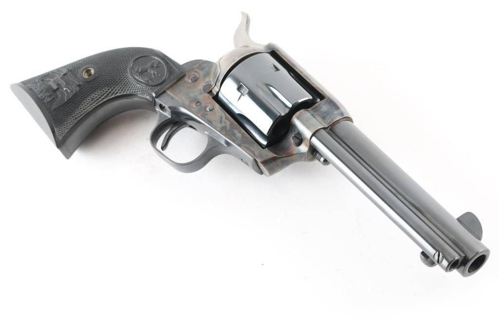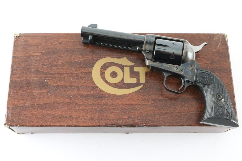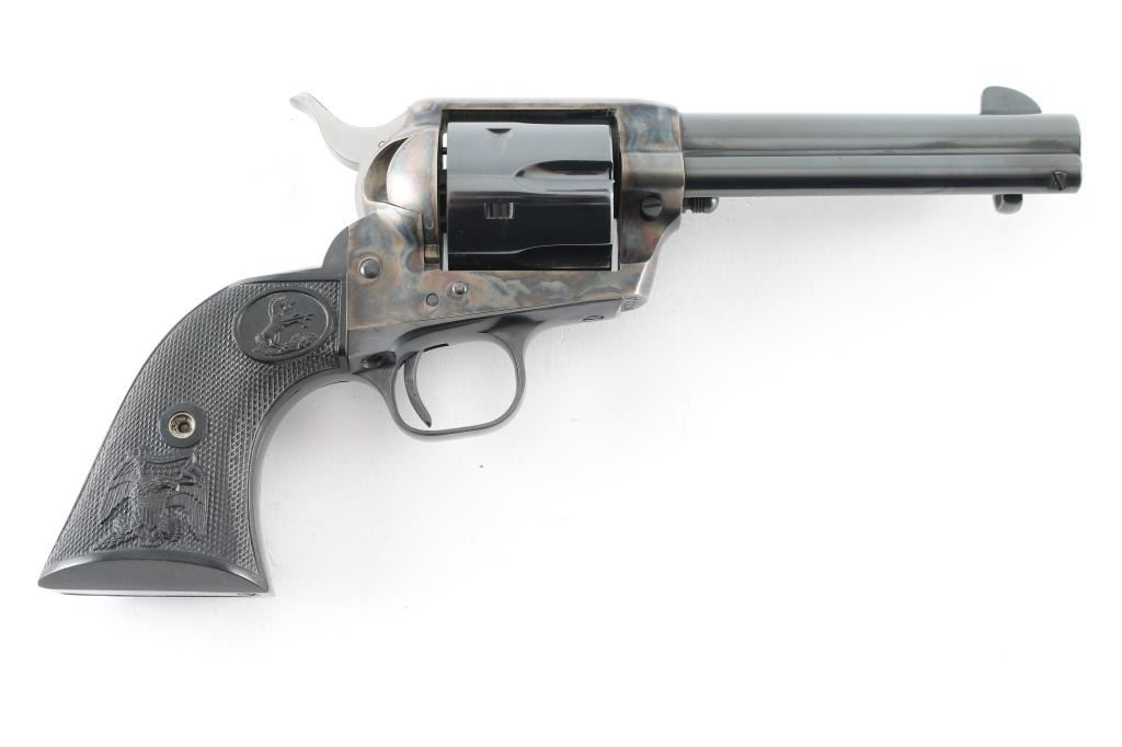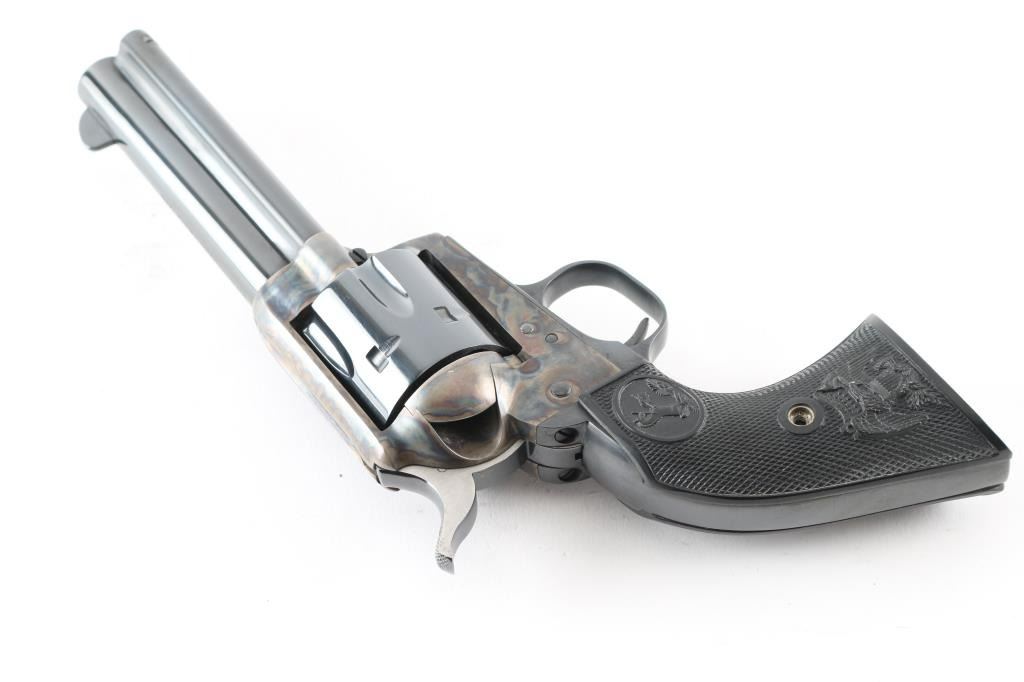 'Second Generation' revolver manufactured circa 1973. Features 4.75" barrel, blued/case colored finish, checkered black plastic "eagle" grips. Retains over 98% finish, with no visible drag line. Cylinder not turned during inspection. Includes matching styrofoam & wood grained cardboard box. Condition is NRA Excellent - like new *** Modern Firearm ***