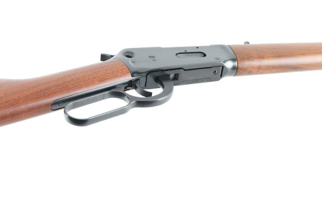 Made in America this Winchester 94 Angle Eject (AE) has a 20" blued barrel and matching receiver. It sports a hooded blade front sight and a rear sight but is missing the rear sight elevator. The metal finish looks great with very minor signs of handling. The only real signs of use are a small scuff on the left side of the shoulder stock and Winchester butt plate. LOP is 13.75". Bore looks great just dusty. Condition is NRA Very Good *Modern Firearm*