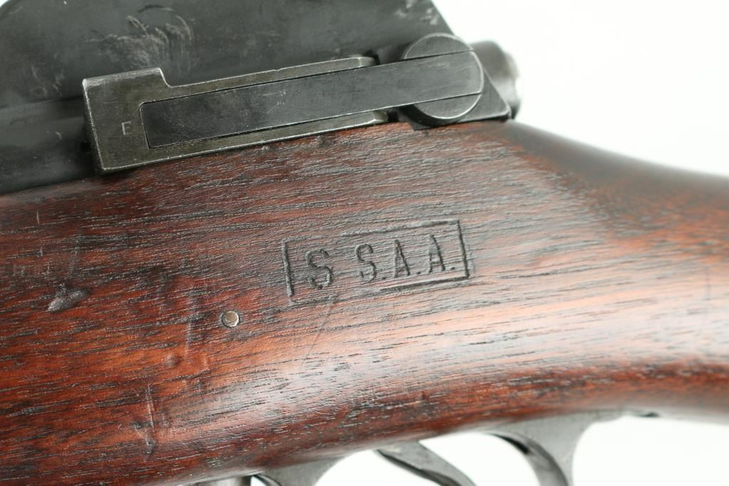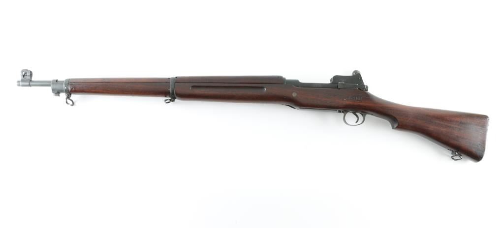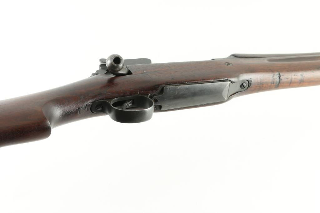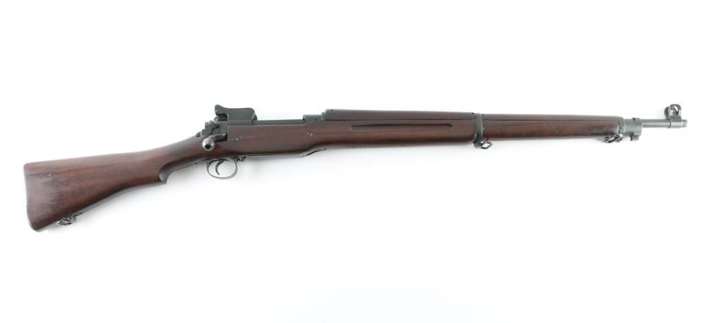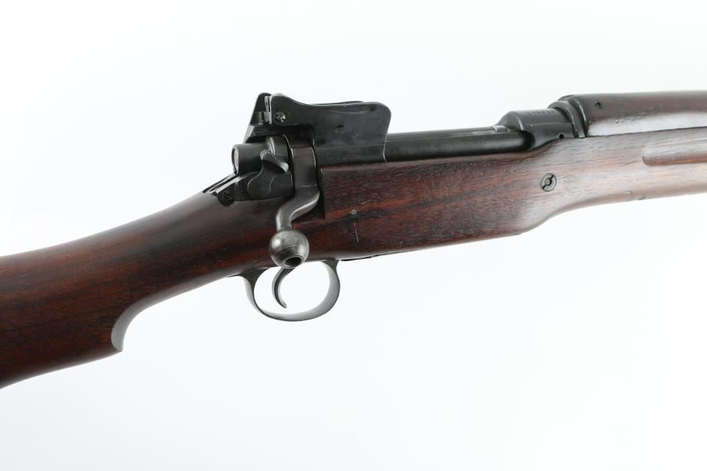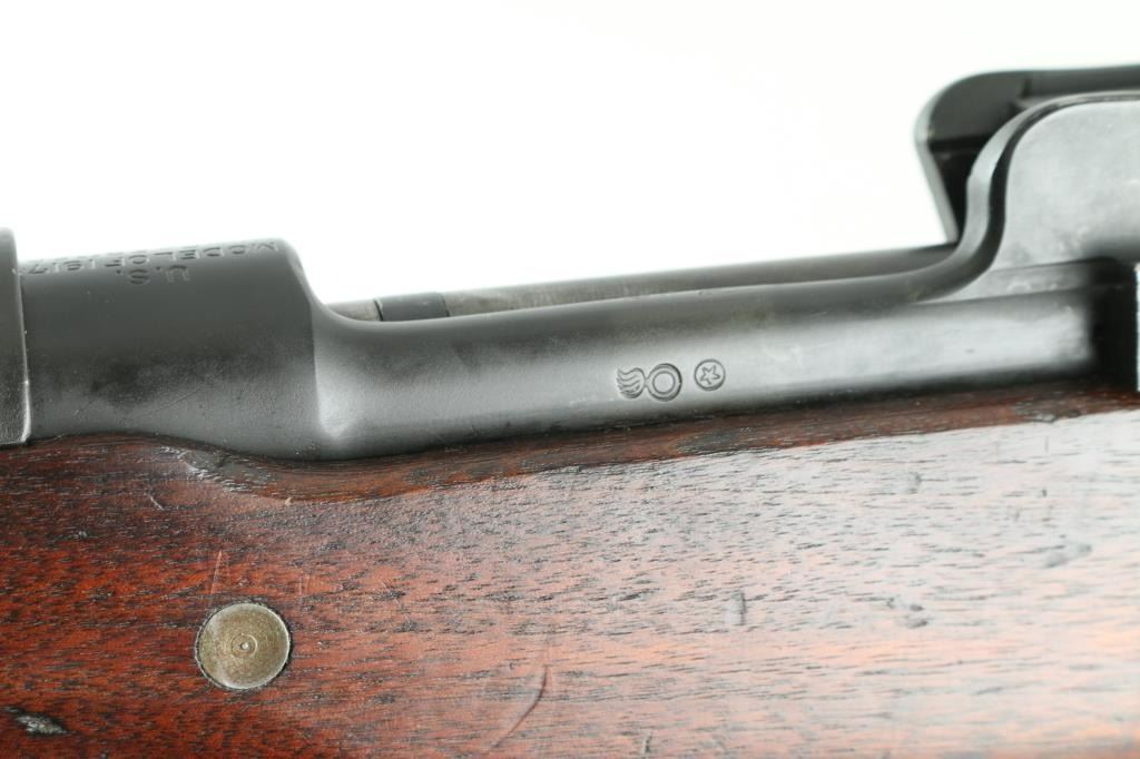 Rifle. Bolt-Action. U.S. Infantry rifle used in both Word Wars. Modified Mauser turn-bolt action. 26" barrel , with rear ladder aperture sight, front sight blade, both with sight protectors. Clip-fed 5 rd magazine. Thumb safety on right receiver. "Winchester Model of 1917" and serial number marked on receiver ring. Barrel date 6-18, with flaming bomb and "R".(Remington) Front sight also stamped "R". Bolt handle stamped "USMC" with flaming bomb, Which stands for "United Shoe Machinery Corp". (I know, I wish!) "P" in square cartouche behind the triggerguard. "S SAA" in square cartouche on left stock. (San Antonio Arsenal) "33" stamped on lower left buttstock.. Flaming bomb, two eagle heads, and star in circle stamped on left receiver rail. 46.3" overall. Bore appears excellent. Action is smooth/tight. Blued metal finish is good about 80%. with edge wear. friction loss to the bolt, and some handling wear. Wood stock, and hand guards are very good with the usual dings, scratches. Nothing serious. A nice conditioned Model 1917. NRA Condition-Very Good. C&R Firearm.