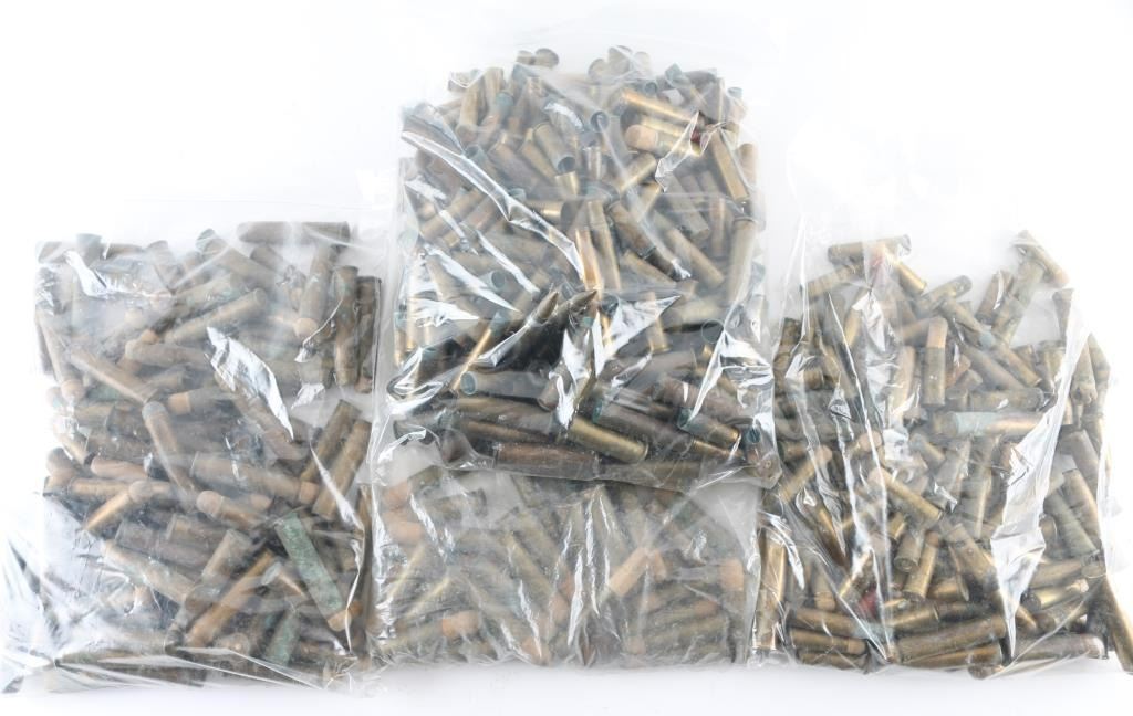 Approximately 20 lbs of vintage brass, a lot of 45-70, various head stamps, and W.R.A. Co 50-110, with Sabot wood projectiles, brass casings in many other calibers, including W.R.A. Co 38-55, Western 32-40, Rem-UMC 25-35, etc. Seen one U.M.C 25-25, and 45-90 W.C.F. Cant go through it all. Needs to be cleaned, some have verdigris. This lot came from the estate of William Kirk, a gunsmith in Wyoming in the early 1900's.