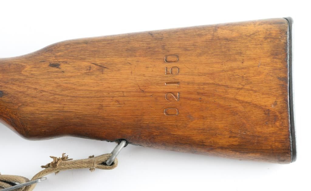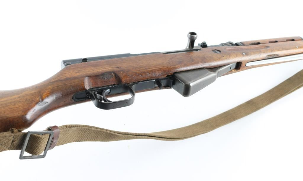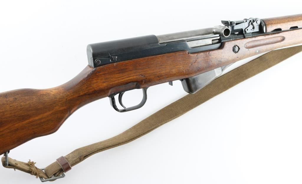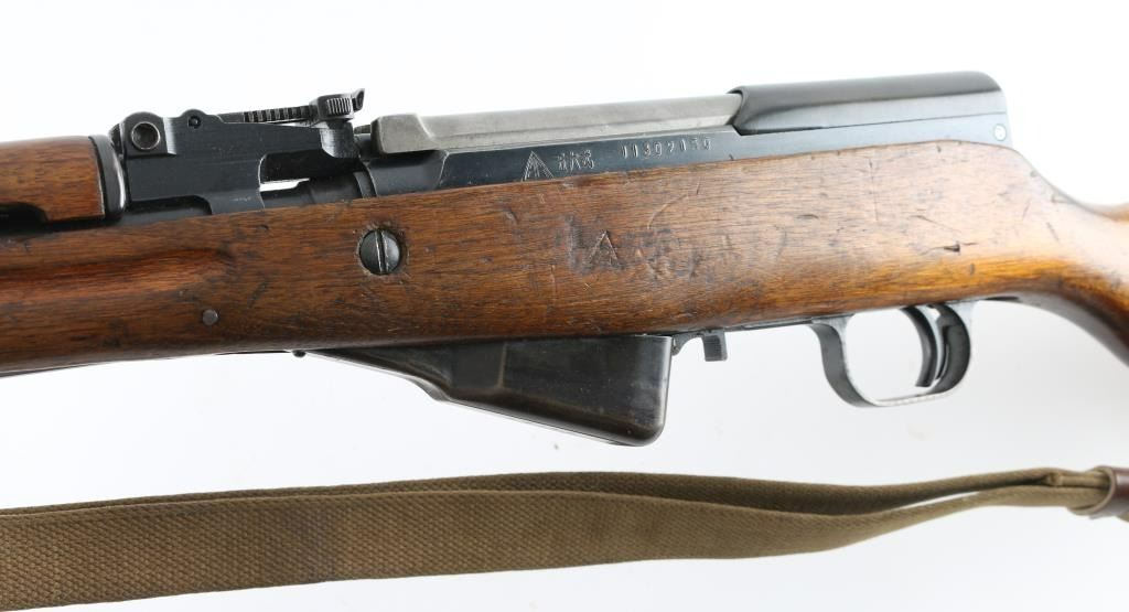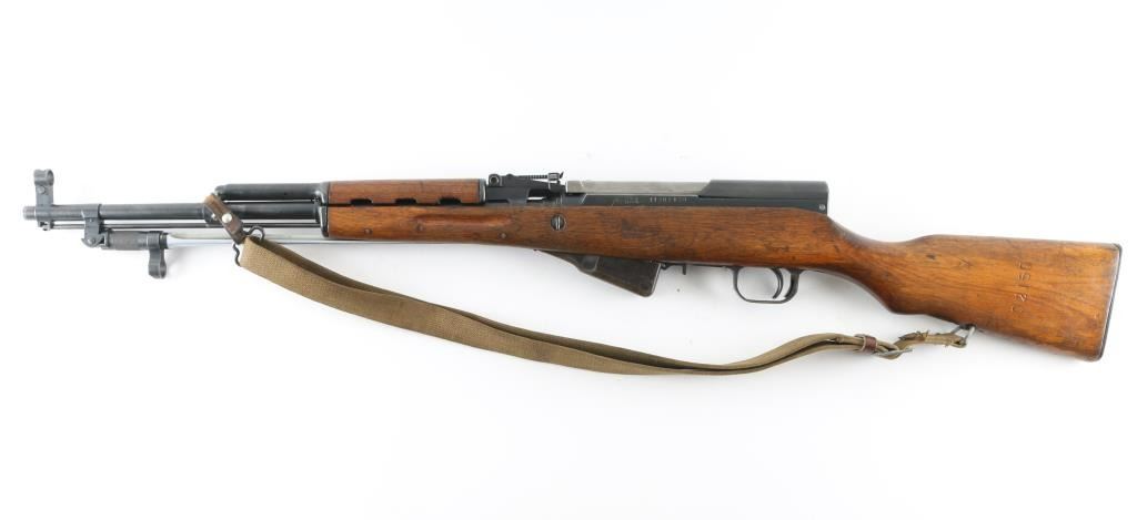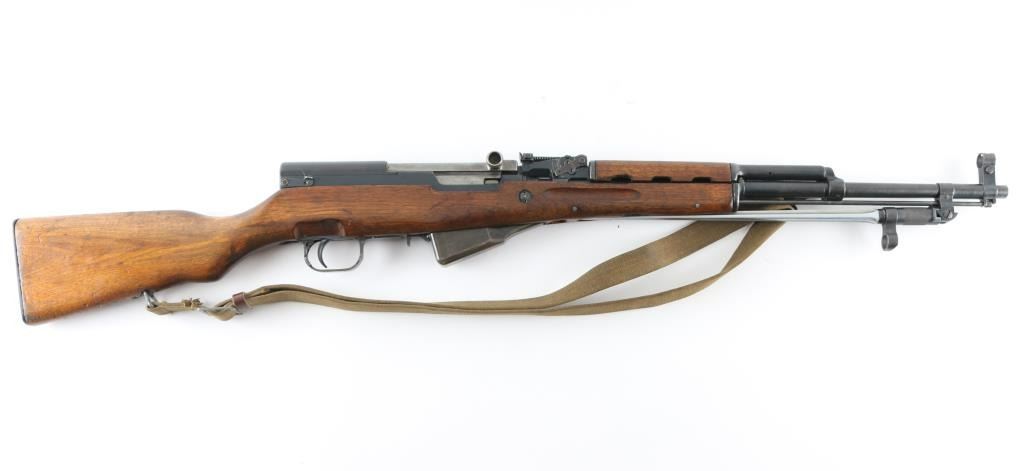 Chinese military semi-automatic service rifle chambered in 7.62x39mm, manufactured at the Jianshe Arsenal (factory 26) circa 1967. Features a blued finish, 20.25" barrel, adjustable hooded post front sight, tangent rear sight graduated to 1,000 meters, missing cleaning rod and under folding spike bayonet. It has a smooth trigger, manual safety in the rear on the triggerguard, 10 round fixed magazine, smooth laminated wood handguard, and semi-pistol grip shoulder stock with finger grooves in the forend & smooth metal trapdoor buttplate containing a cleaning kit. Matching serial numbers are found on the receiver, bolt, bolt carrier, trigger guard, stock, and magazine. Metal finish looks good showing some scattered handling marks/wear. Action is smooth, the bore looks good and the wood stocks are good but does show some wear as is to be expected. No import marks, possible Vietnam bring-back. Comes with original issue canvass sling. NRA Condition-Near Very Good. C&R Firearm