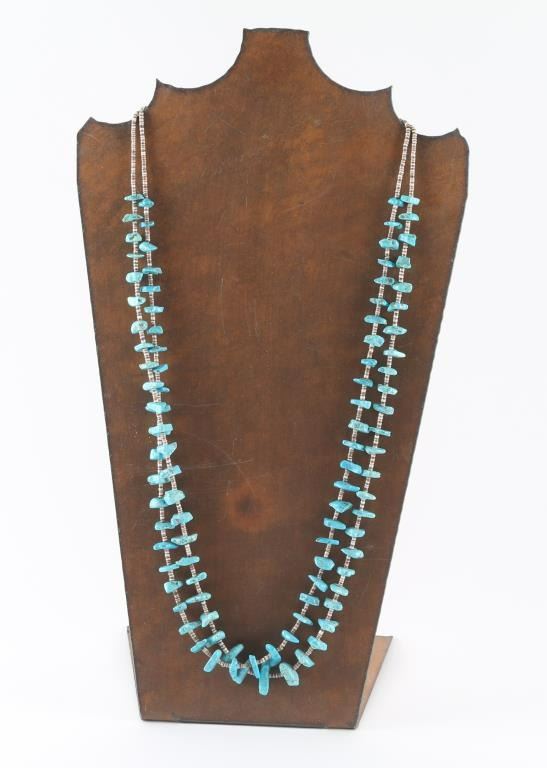 Lot 416 Navajo Two Strand Turquoise Necklace