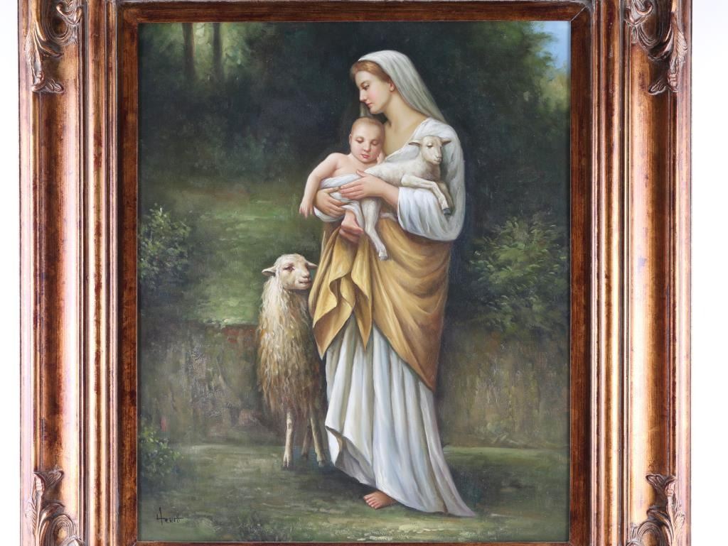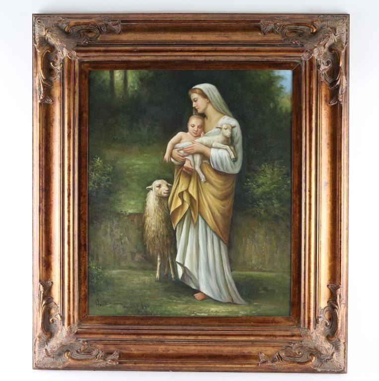 By Hewitt, Depicting "Mary an child" signed lower left, in framed wood frame. In beautiful condition and measuring 23"x20".