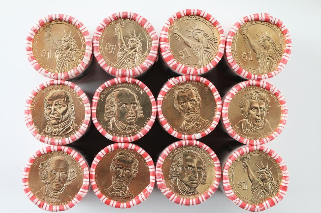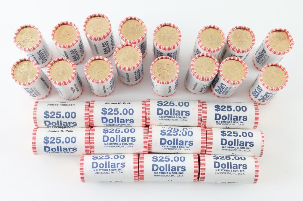 Consists of twenty-seven $25 rolls. Including (6) James K. Polk, (5) James Madison, (4) Andrew Jackson, (3) Zachary Taylor, (3) James Monroe, (2) John Quincy Adams, (2) Martin Van Buren, and (2) Abraham Lincoln.