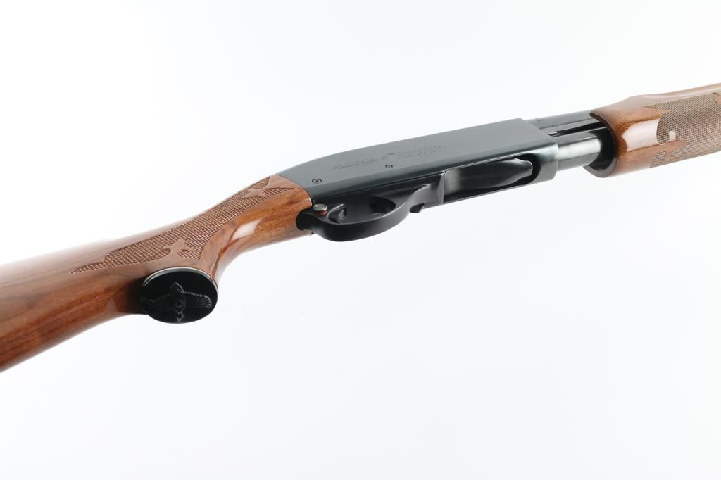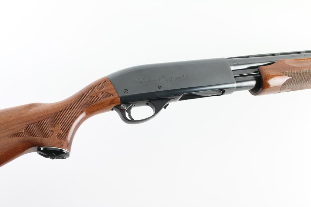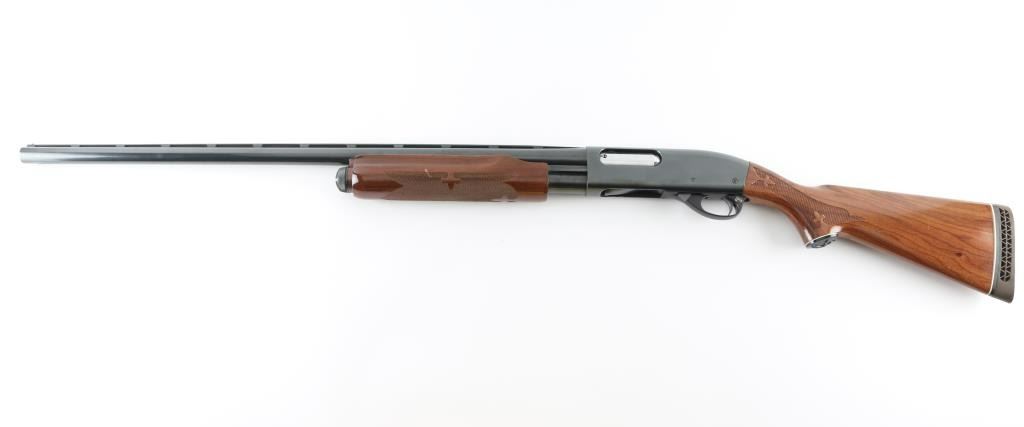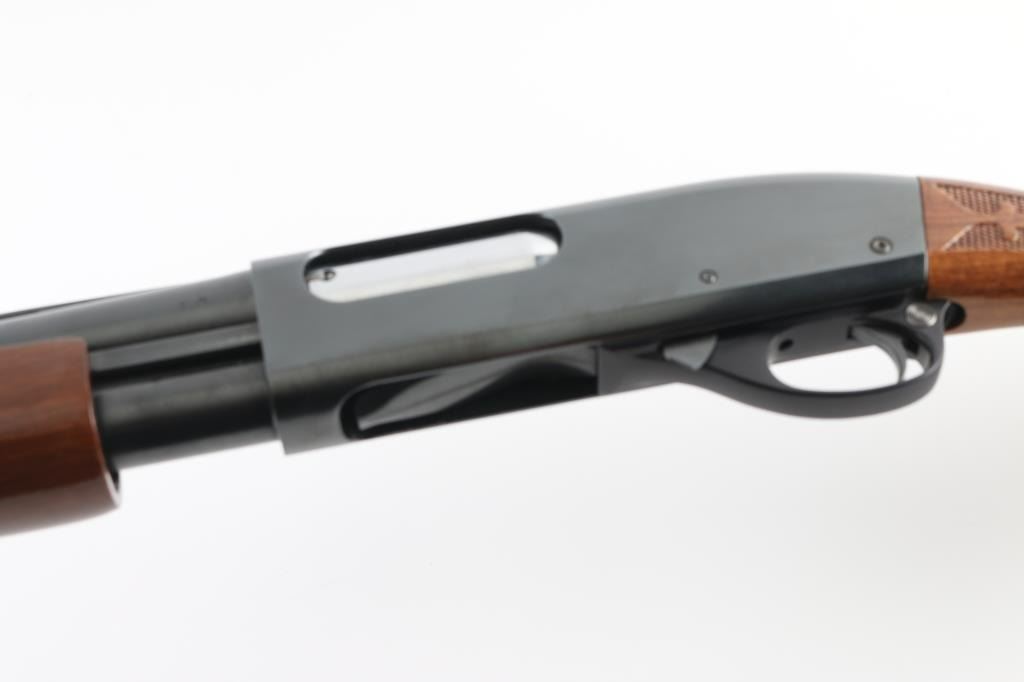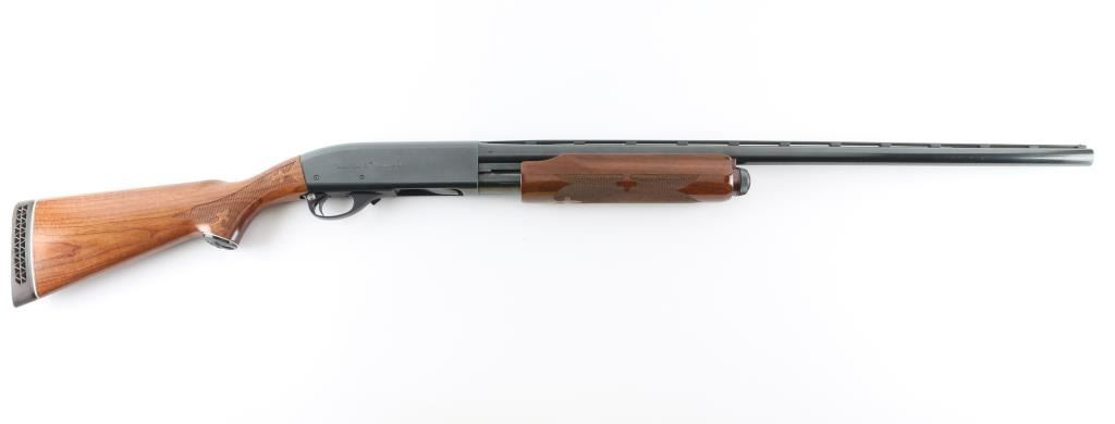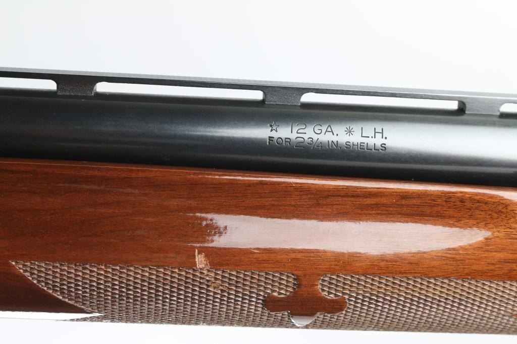 SN: T409354V This classic American made pump action shotgun is chambered for 2.75" 12 gauge shells and is made for a left handed shooter so the spent shells eject to the left. It features a 28" blued barrel with a vent rib, fixed modified choke, silver colored bead front sight, 12" magazine tube, smooth trigger and metal trigger guard. The two piece wood stocks have fleur-de-lis checkering at the wrist and forearm with the flying duck grip cap and Remington factory recoil pad. LOP is 14". Bore looks great, bright. Metal finish looks very good with minor signs of handling. Wood stocks look great with one scuff on the left of the forearm and a barely visible surface scratch on the left of the shoulder stock. Condition is NRA Near Excellent **Modern Firearm**