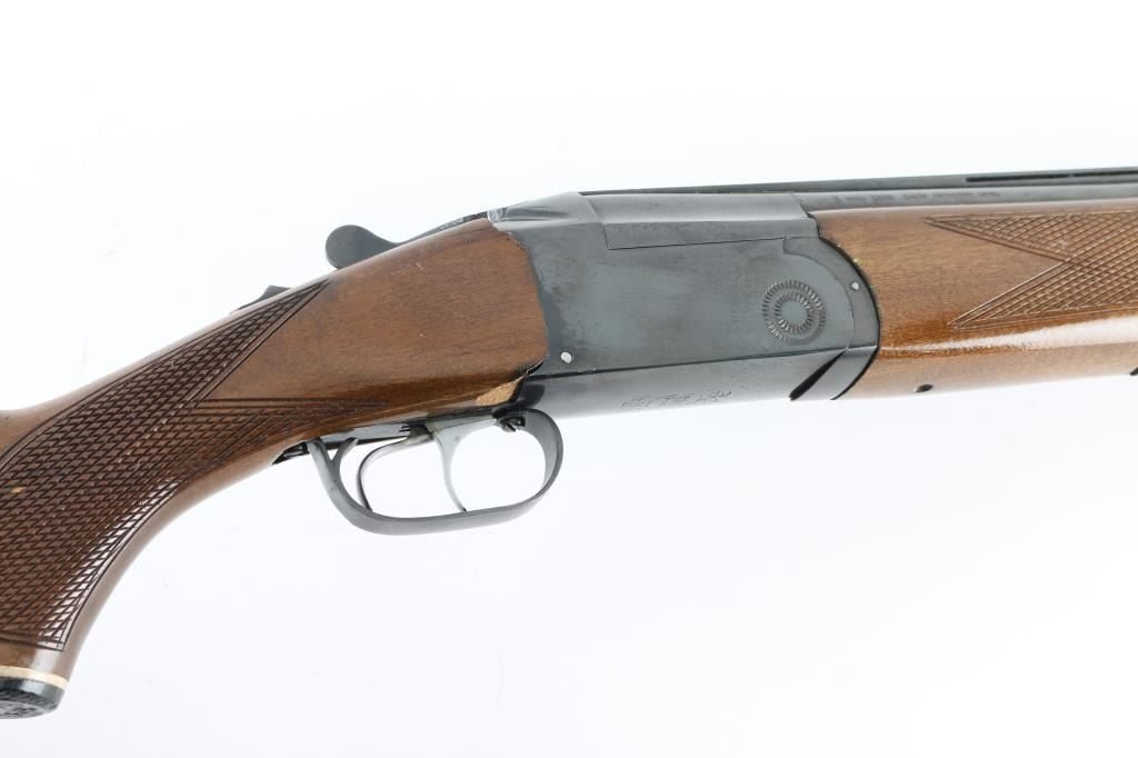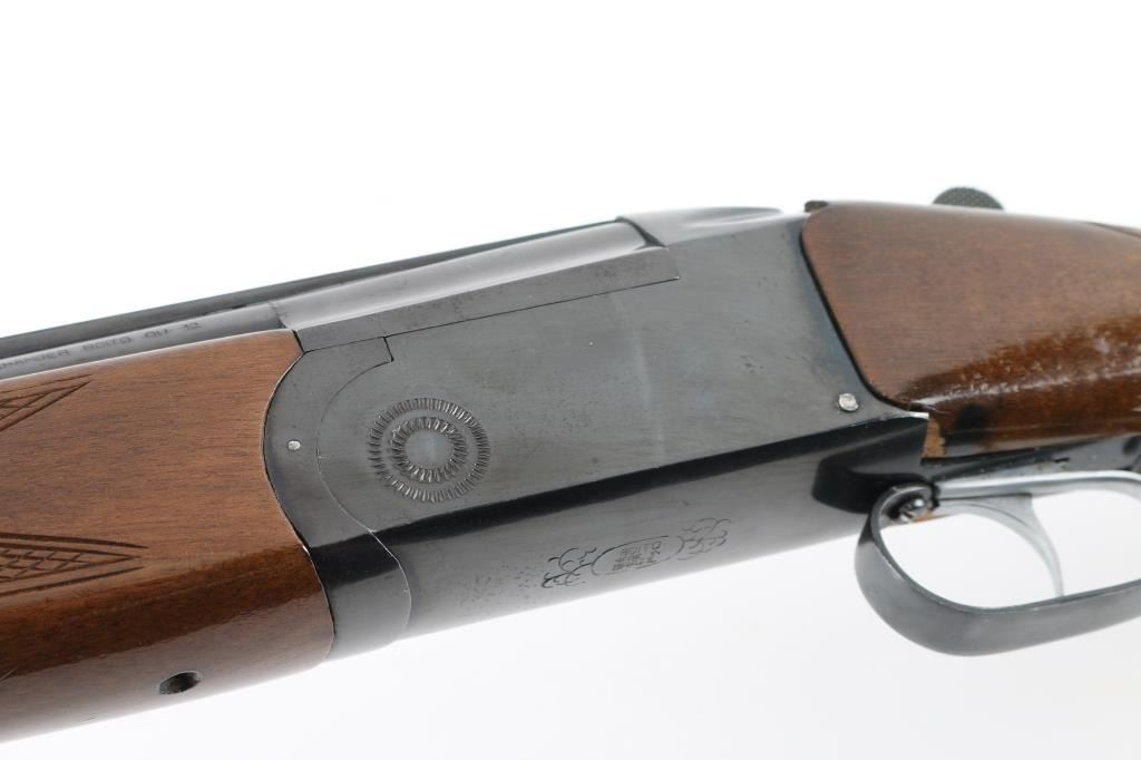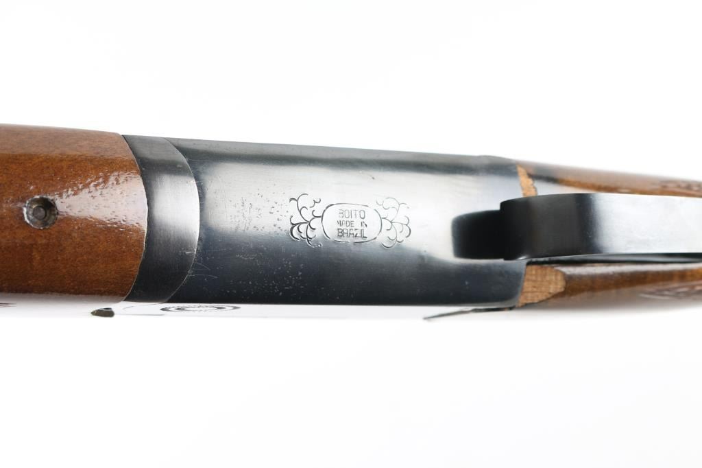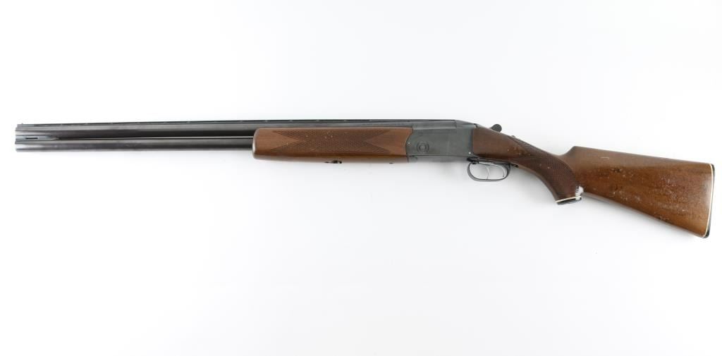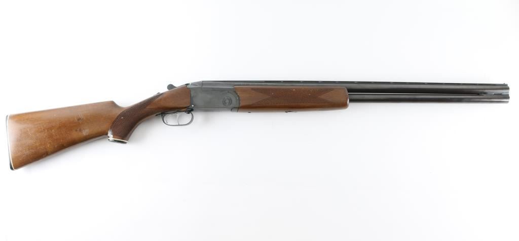 Brazilian made O/U shotgun chambered for 2 3/4" 20 gauge shells. Imported by K Mart Corp. Featured a blued finish, 28" barrels, extractor, brass bead front sight, smooth double triggers, steel triggerguard/action release, tang safety, checkered wood forend and pistol grip shoulder stock with black grip cap & factory plastic buttplate.. Shotgun exhibits approximately 95% of it's original finish showing edge wear, and some minor rust spots on the right receiver. . Action is sound, bores are good and wood stocks are good with several small blemishes, and a couple of small chips where the action breaks open on the lower stock. NRA Condition-Near very Good. Modern Firearm.