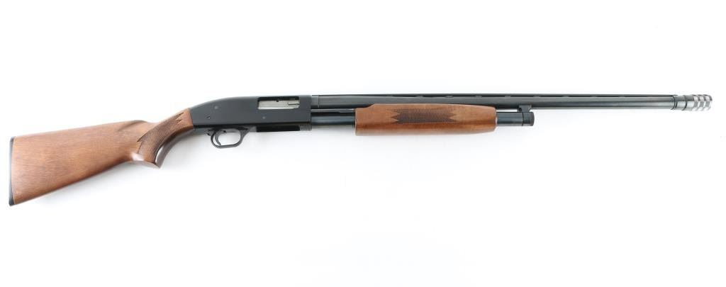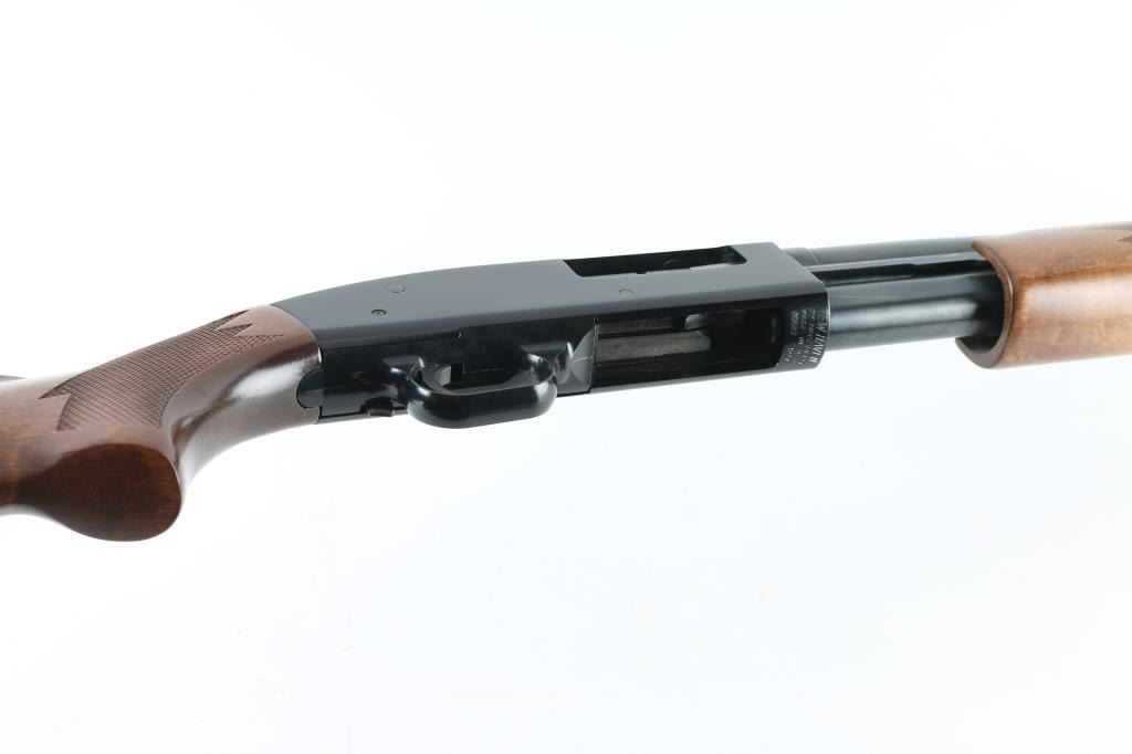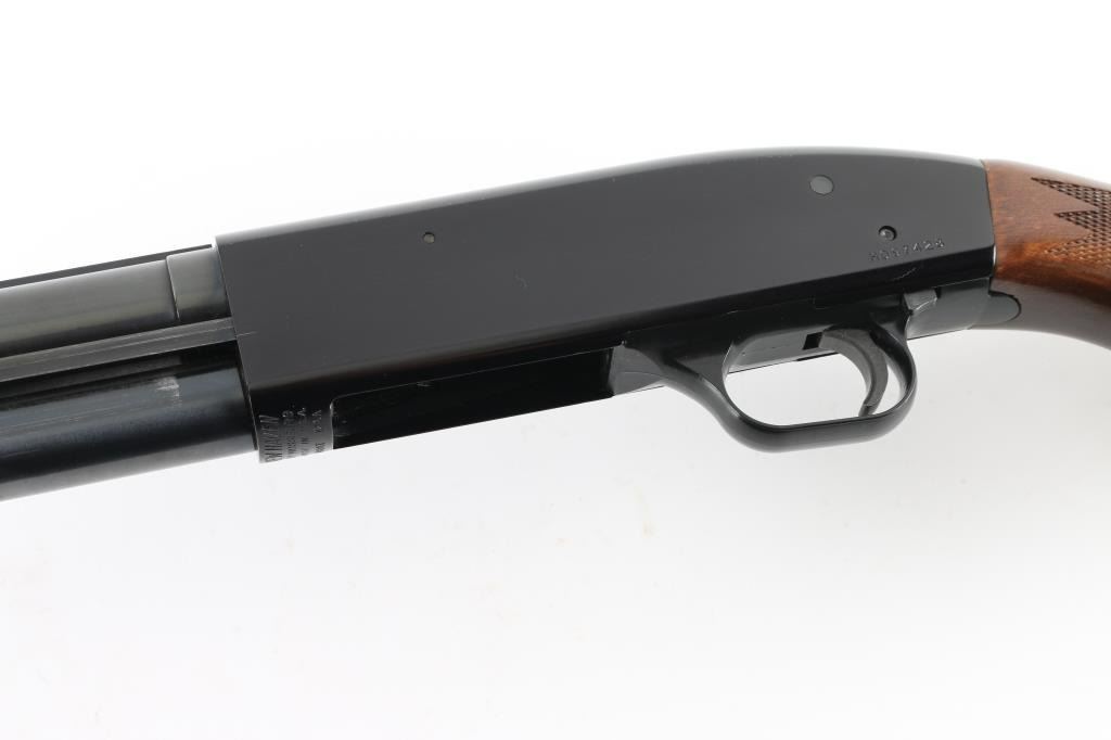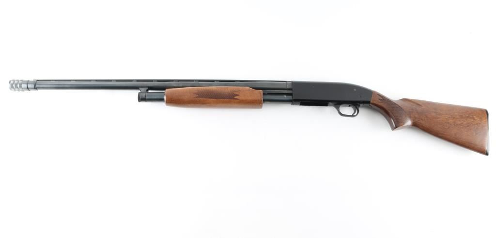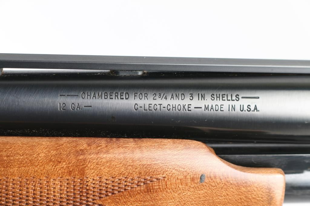 American made slide action repeating shotgun chambered for 2 3/4" or 3" 12 gauge shells, manufactured circa 1977-1998. Features a blued 26" vent rid barrel with C-Lect-Choke adjustable choke system, silver sighting bead, 1/2 length tube magazine, smooth trigger with beveled edges, black finished aluminum receiver, sliding safety, press checkered slide handle and pistol grip shoulder stock with serrated black buttplate. Shotgun retains approximately 98% of it's original finish. Action is smooth, bore is excellent and the wood stock is fine. The safety lever is missing, plate and screw are there, and operates, easy fix. NRA Condition-very Good+. Modern Firearm.