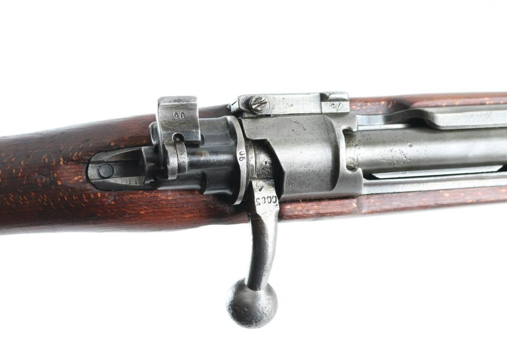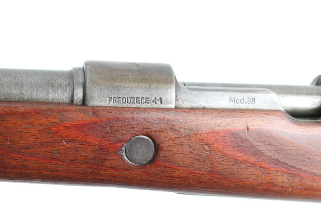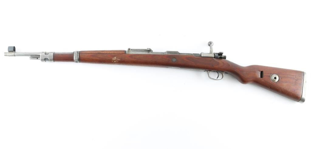 This is a WW2 German military issue K98k that has been re-worked at Preduzece44 (Institute44) at Kragujevac in post WW2 communist Yugoslavia. The fact that the Yugo crest has been ground off suggests that it was sold to another country, mostly Middle-Eastern. Blued finish. Wood stock, and handguard. 23.62" barrel. Steel , cupped. unmarked butt plate. Hooded front sight. no rod present. Serial number matched on receiver, floorplate, and stock. Waffenamts present. "H"barrel band. Blue finish is mostly in the white, turning a gray patina from handling. Wood is good shape, with small dings/dents present. Action is smooth/tight. Bore is rough with rifling. No import marks observed. NRA Condition-Fair to Good. C&R firearm