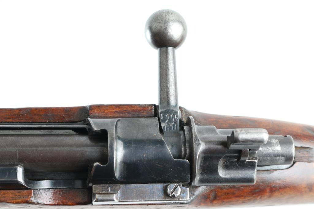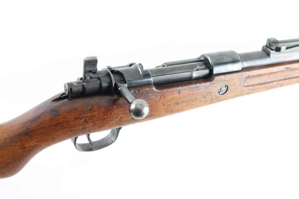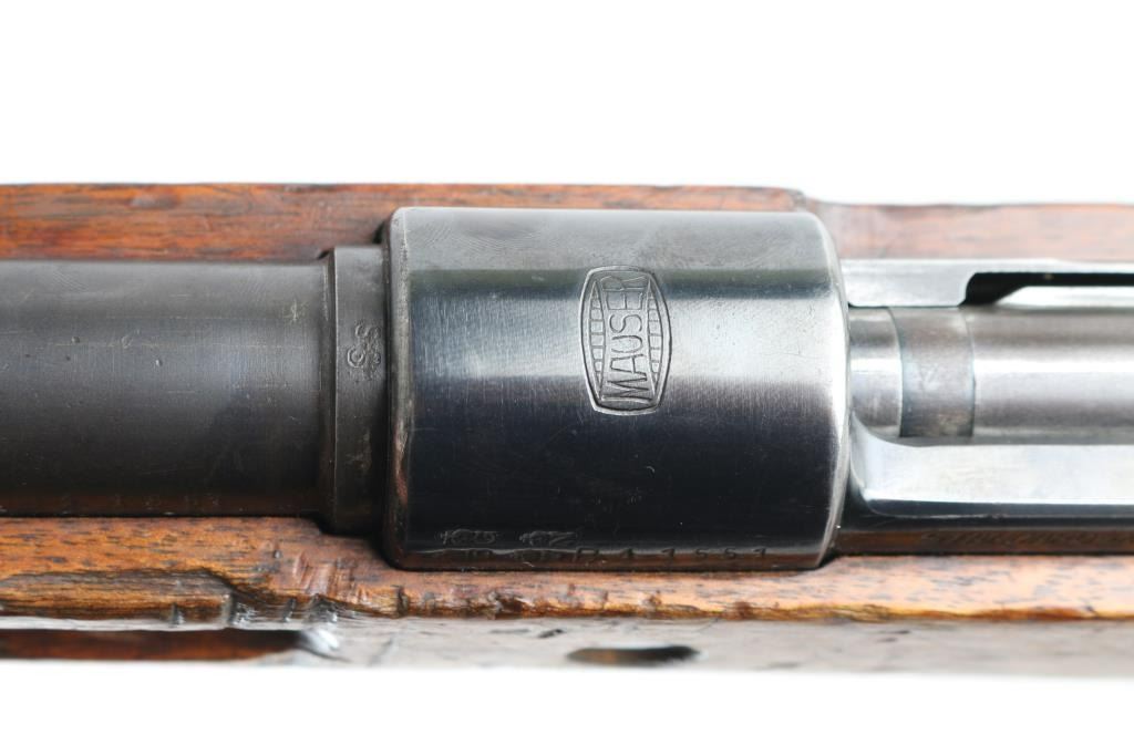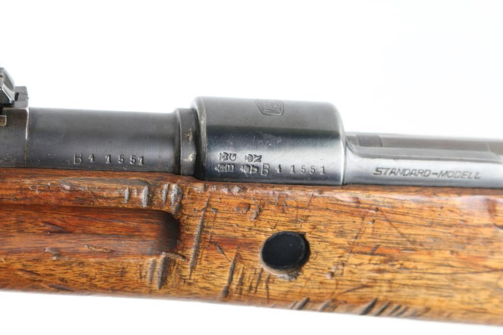 Rifle. Bolt-Action. 5-rd internal magazine. Produced 1924-1935. Officially designed foe export and German security guards. Used pre-war by the S/A, and SS. 23 1/2" barrel. checkered ramp, triangle blade front and tangent rear sights. Almost identical to the K98, with straight bolt, no disassembly disc in stock, and no single barrel spring. Receiver ring stamped with Mauser banner, and Crown proofs. Side wall stamped "Standard- Modell". "H" type front barrel band. Matching serial numbers on barrel and receiver, rear sight, triggerguard, floorplate, and bolt release. Mismatched bolt, . No cleaning rod. Flat steel buttplate. Bore appears dark, with rifling present. Markings are crisp/clear. Action is crisp/tight. Blued finish is about 60% with numerous scratches, dings. There is still some nitre blue on the bolt release. Wood stock/handguard have numerous scratches/dings, with a couple of minor chips. NRA Condition-Good. C&R Firearm.