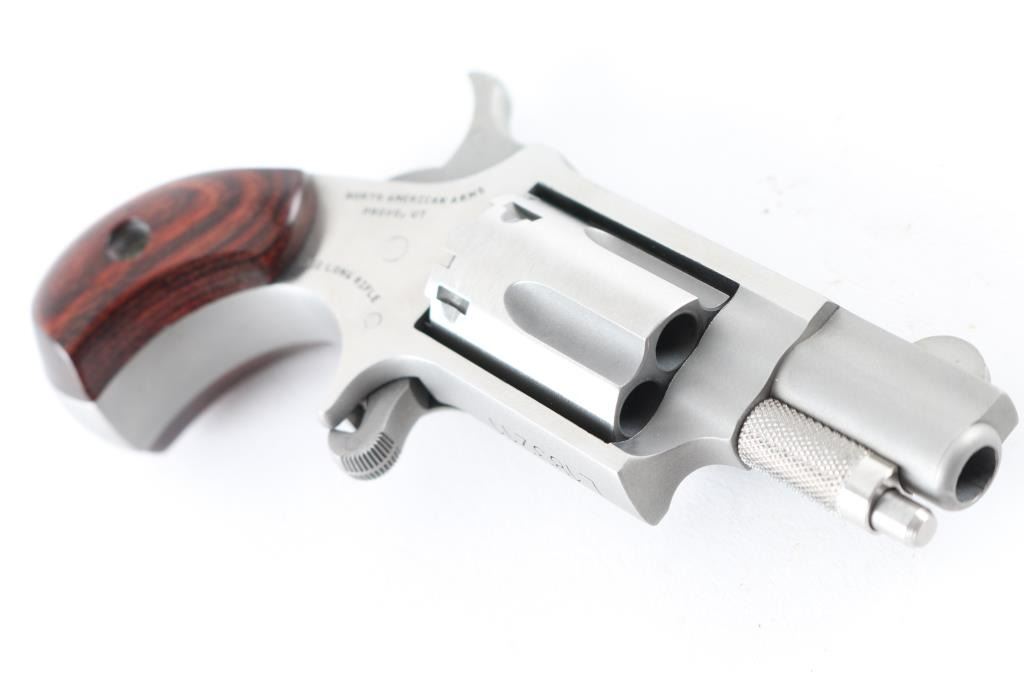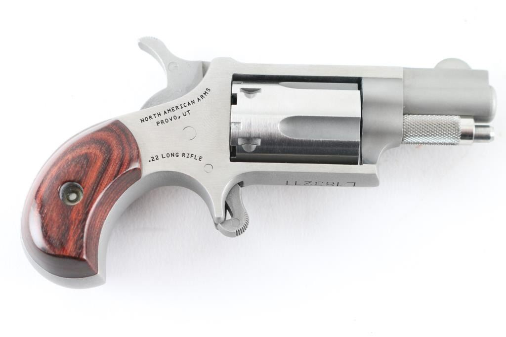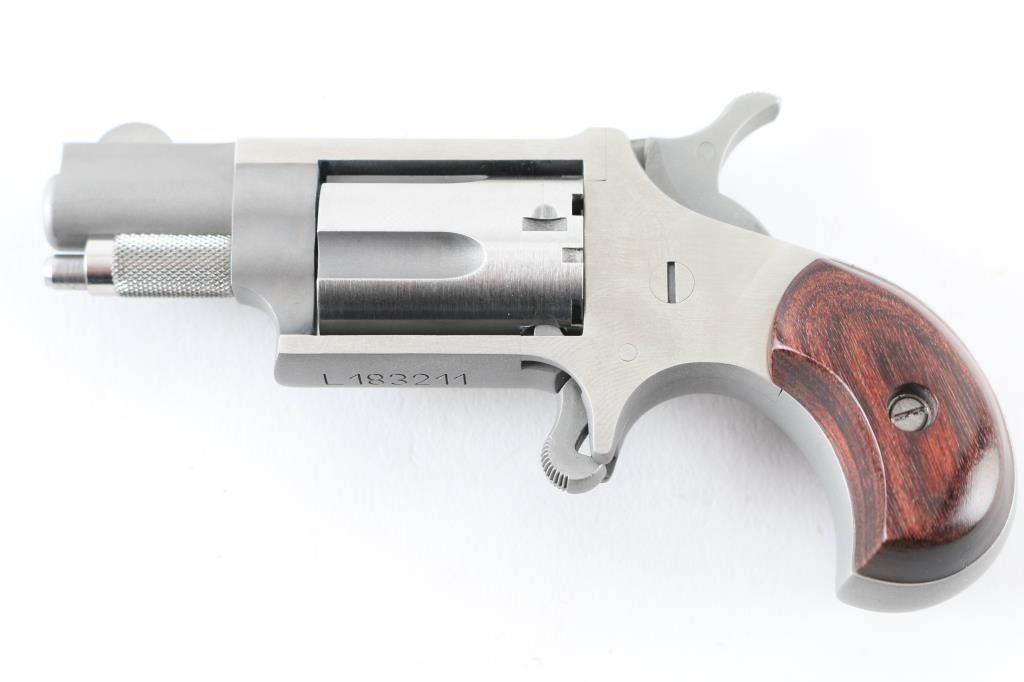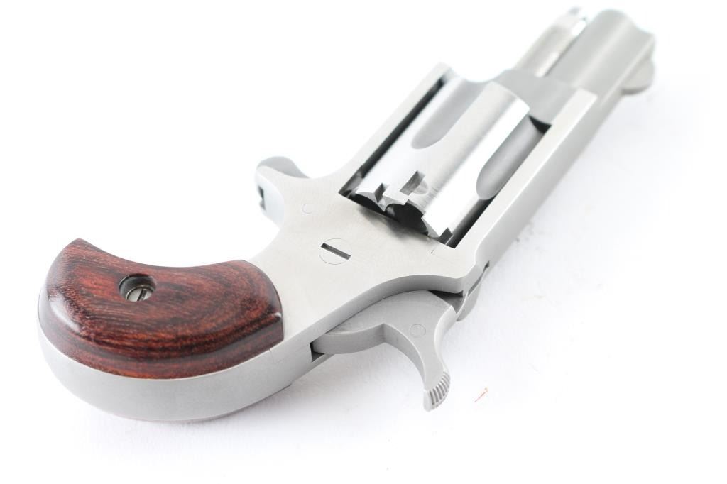 Sn: L183211Single action rimfire revolver features 1-5/8" barrel, fixed sights, 5 shot fluted cylinder, spur trigger, bird's head butt with 2 piece wood grips. Cylinder is removed to load or unload. Nickel/matte finish. Bore is very good condition. Action is smooth with good lock up. Includes factory plastic lock box with papers. Condition is NRA Excellent *** Modern Firearm