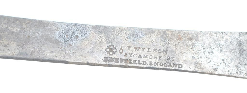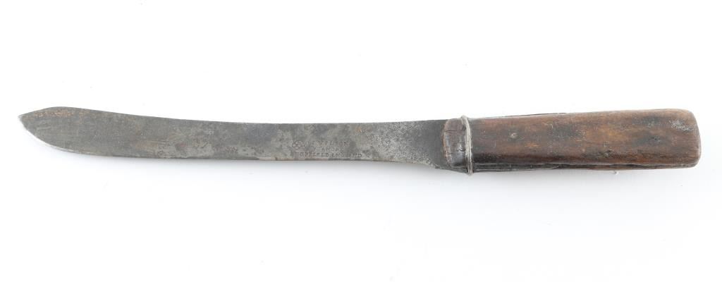 maker marked "Sheffield England", with wood handle measures12" overall with a 8" blade.