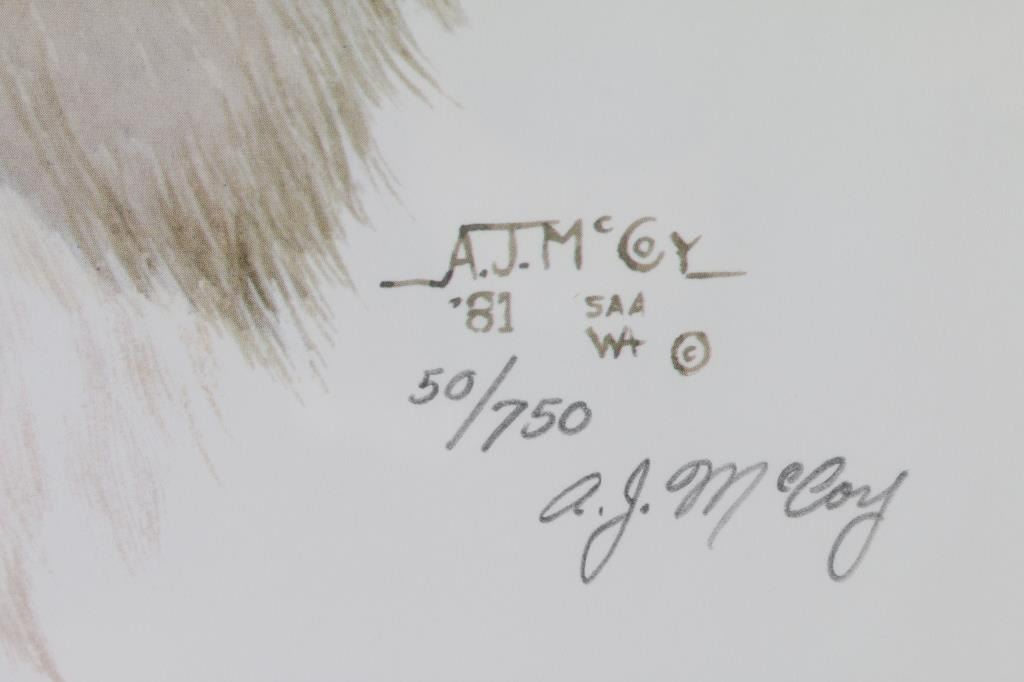 By A.J McCoy numbered ( 50/750 ) signed right hand side, depicting portrait of wolf. Measuring 17x15".