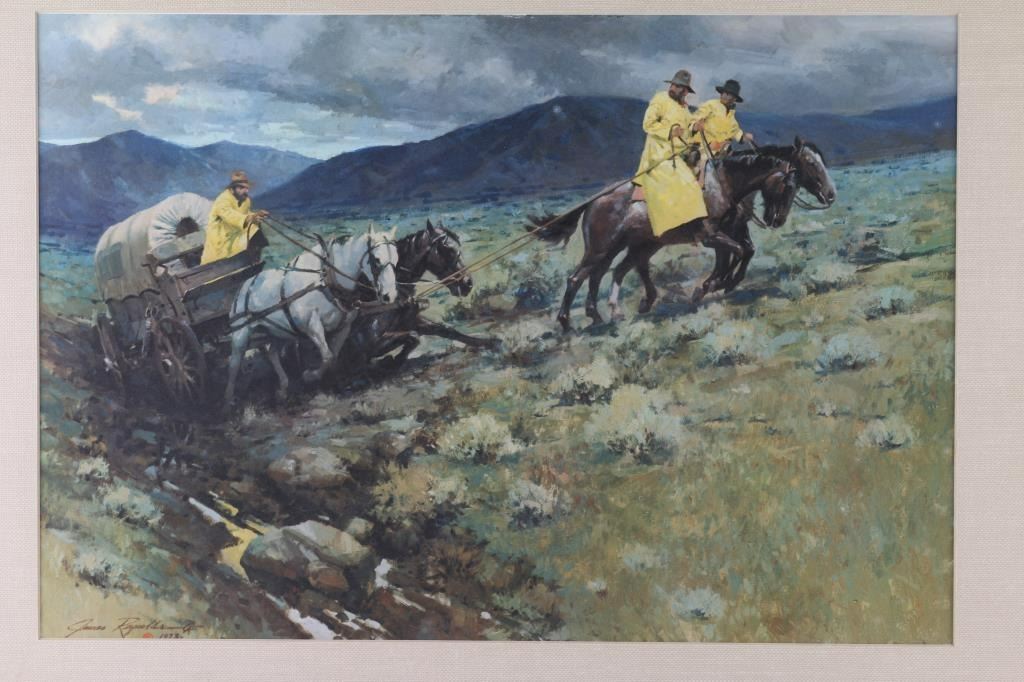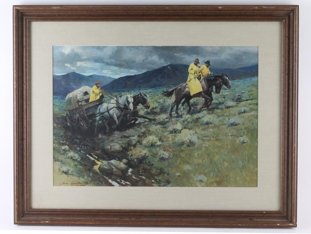 By "James Raymold", in Matted canvas and framed in wood, unsigned, measuring 19x14. In good condition.