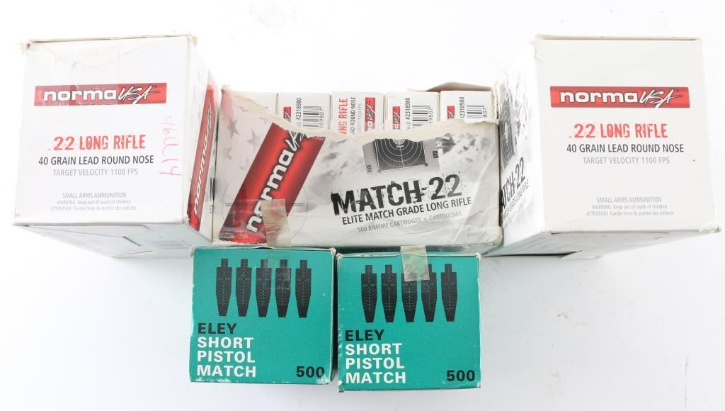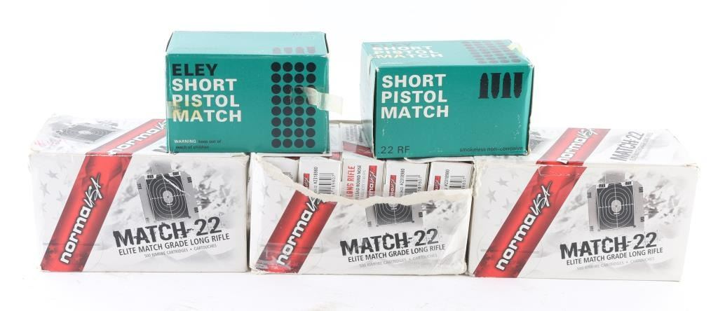 Includes 2,500 rounds total, including "Eley Short Pistol Match" and Norma 22LR "Match-22"