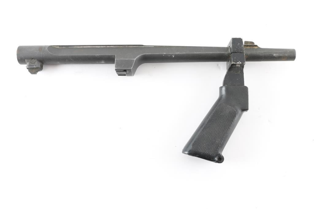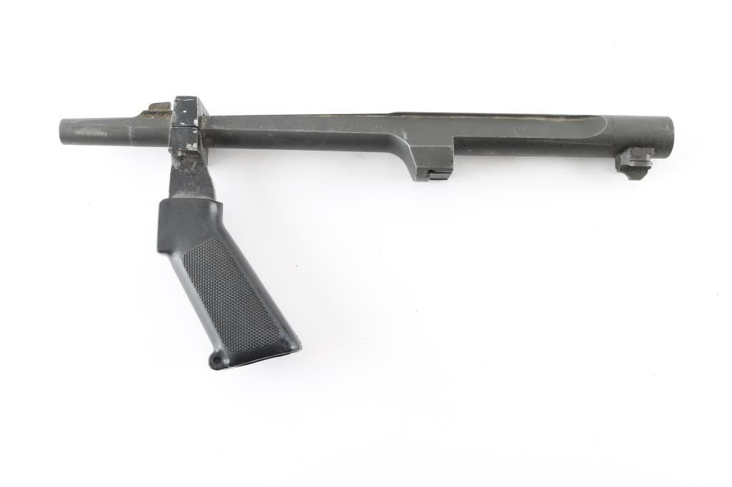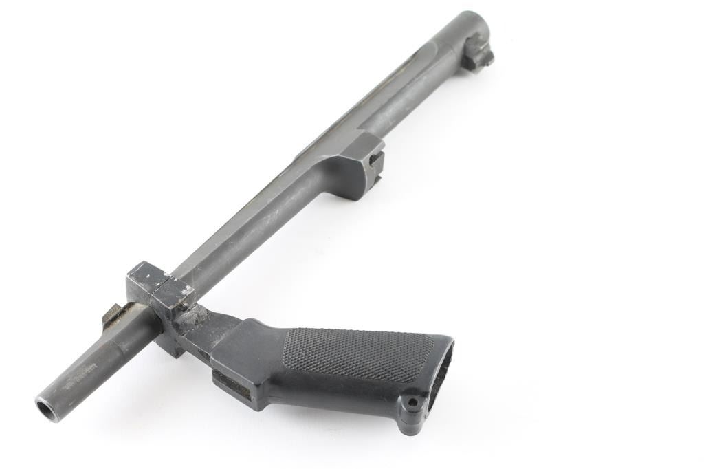 This is a 14" matte finish barrel for a Desert Eagle chambered in .44 Magnum. It has a fixed blade front sight and comes with a fore-grip. Finish shows some wear. Bore looks bright.