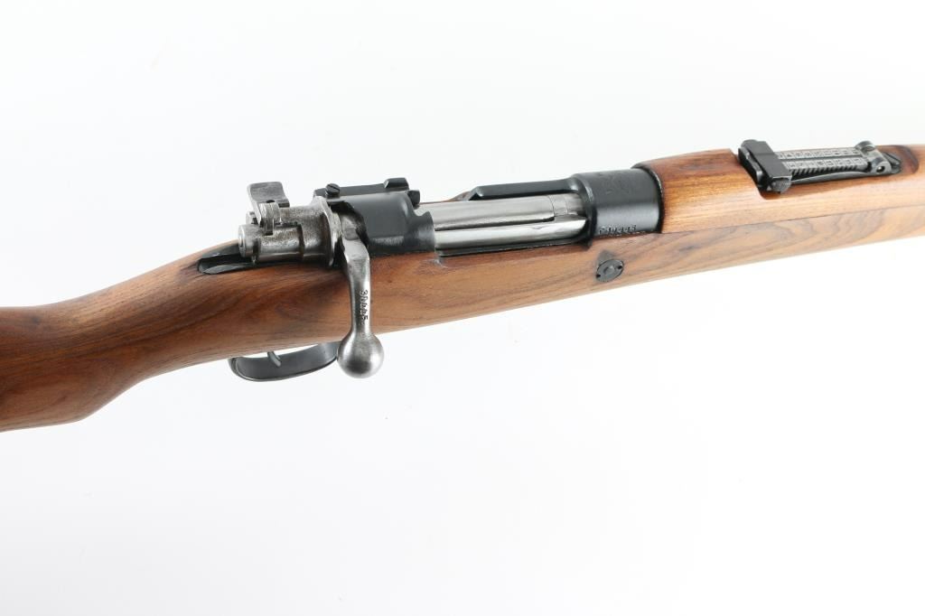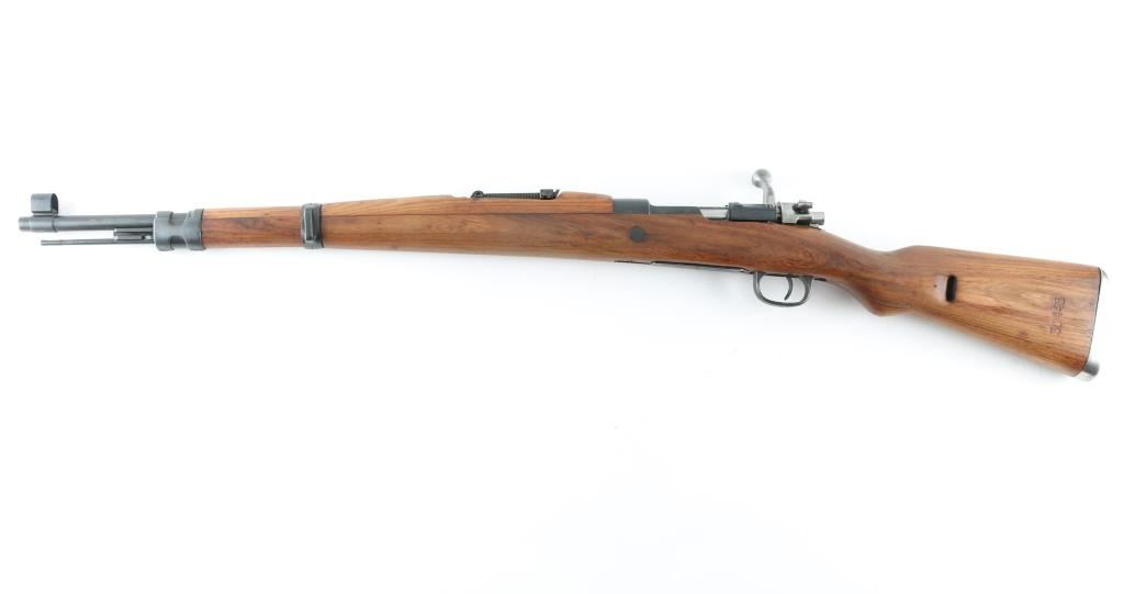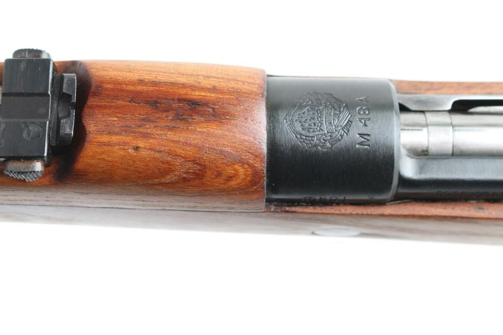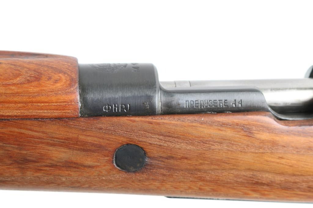 Rifle. Bolt-Action. Model M48A produced 1952-1965. Yugoslavian made version of the German K98K. Yugo crest and "M48A" on receiver ring. Features arsenal re-blued finish (bolt, cupped buttplate in the white), wood stock & handguard, 24" barrel, hooded blade front sight, tangent style rear sight, cleaning rod, bayonet lug, sling slots, manual safety. Matched sn's on receiver, bolt handle, and floorplate, and stock. Bore rough/dark, but rifling present. Action is smooth/tight. Retains 96% blue with scratches & dings. Wood is very good with minor scratches/dings. MMC import markings on barrel. NRA Condition-Good. C&R Firearm