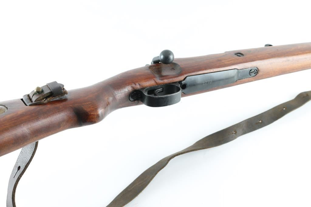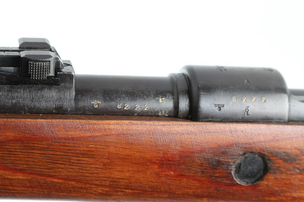 8mm, SN 8222k , German WW2 military issued rifle. Receiver ring stamped "duv", and dated 1940. ( Berlin-Lubecker) This is a Russian capture/refurb. Re-blued. stock varnished. Original serial numbers match on receiver, barrel, and stock (Stamped by the Russians) The rest of the usual parts have been electropenciled with matching SNs. Cleaning rod present. Bore is very good/bright. Action is tight, Wood/metal are very good as refinished. Import marks on left side of barrel. Has non-issue K98 sling attached. NRA Condition-Good, C&R Firearm.
