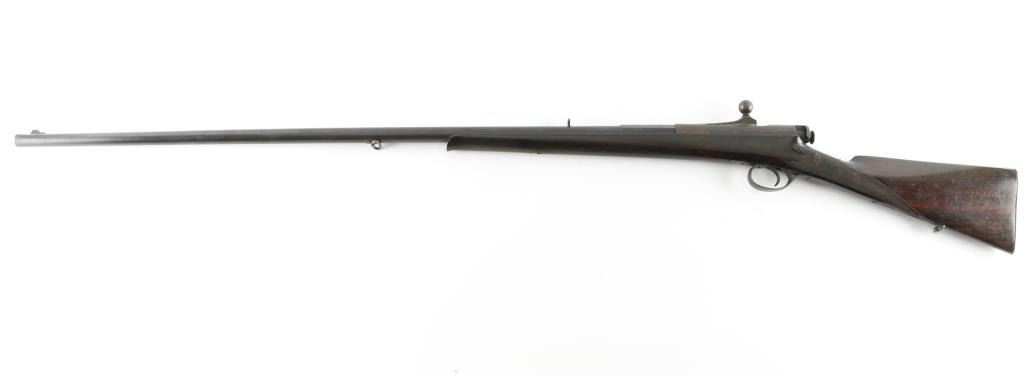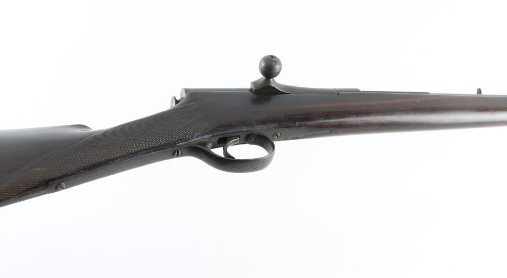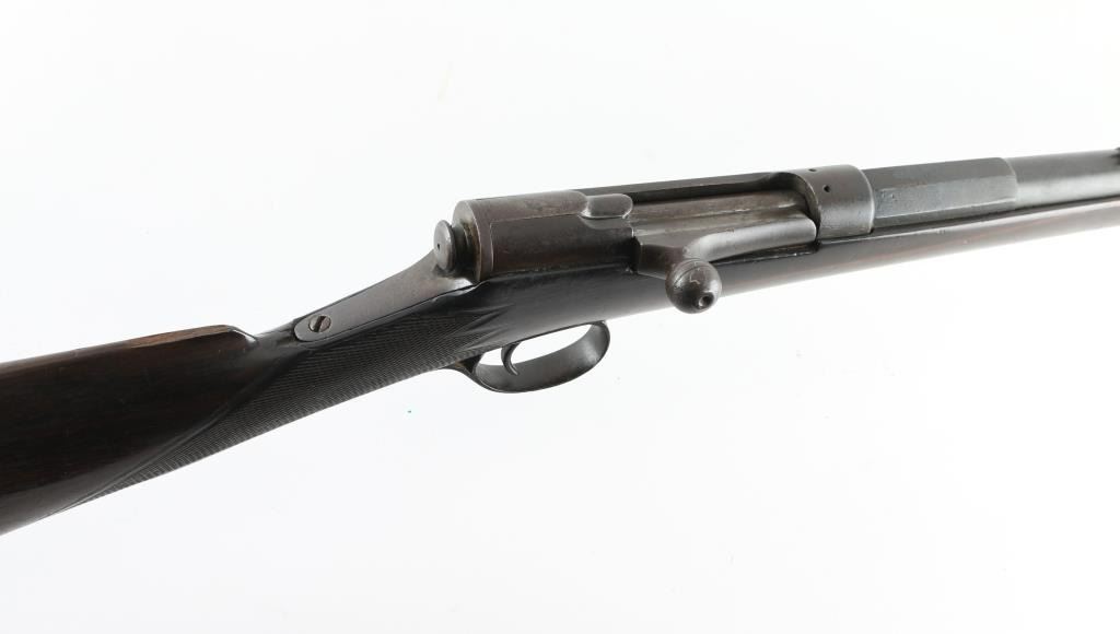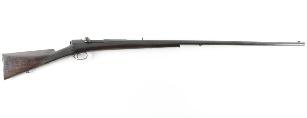 Barrel length: 33.5” Produced: 1880–1905. Straight checkered grip stock with schnabel forend. Front blade, u-notch rear sight. Sling swivels. Smooth bore appears good. Wood is very good with minor scratches. Blued finish has dull, turning a brown patina. Adopted in Emperor Meiji's thirteenth year of reign, the rifle was designated as the model 13 and went into production as the 11-millimeter Type 13 single-shot, bolt-action rifle in 1880. No visible markings, Some floral designs on the triggerguard. NRA Condition-Very good. Antique firearm
